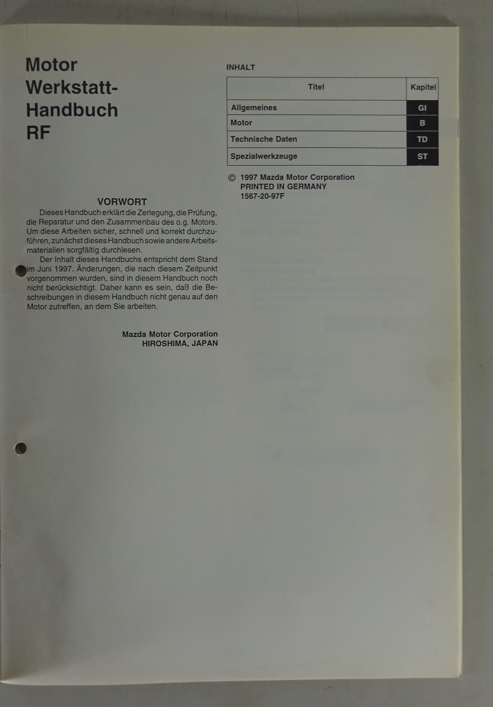 Werkstatthandbuch / Reparaturanleitung original Mazda Mazda Motor RF... mehr