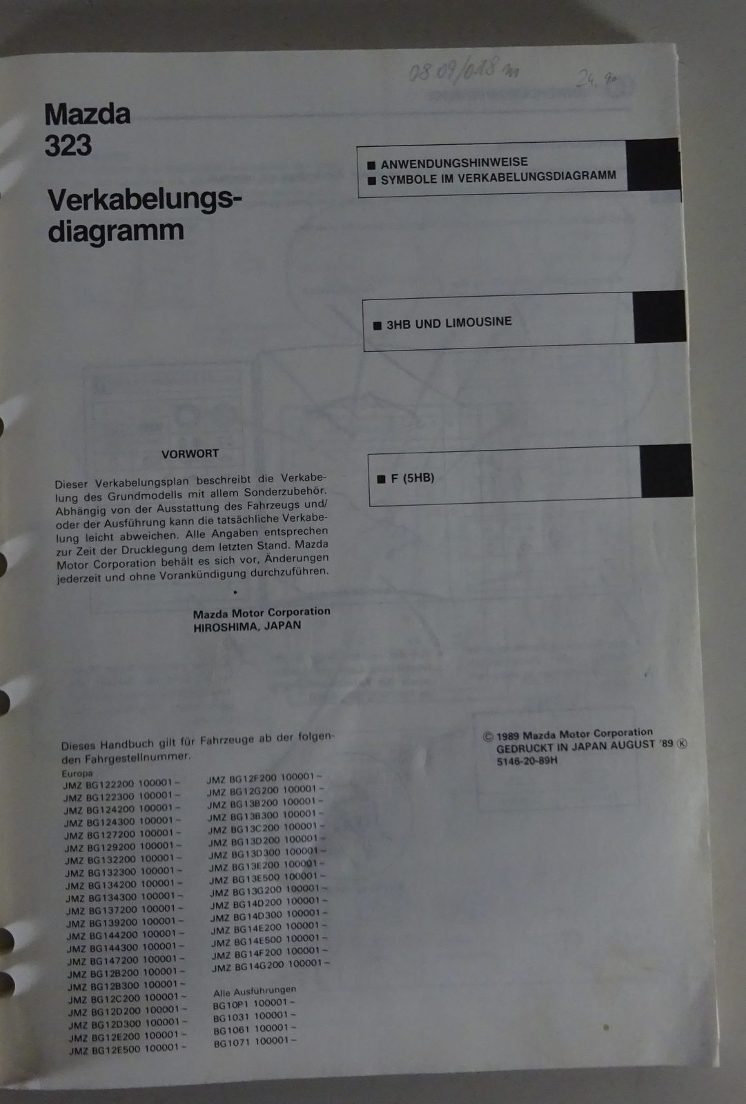 Werkstatthandbuch / Verkabelungsdiagramm | Mazda 323 Typ JMZ BG | Stand 08/1989