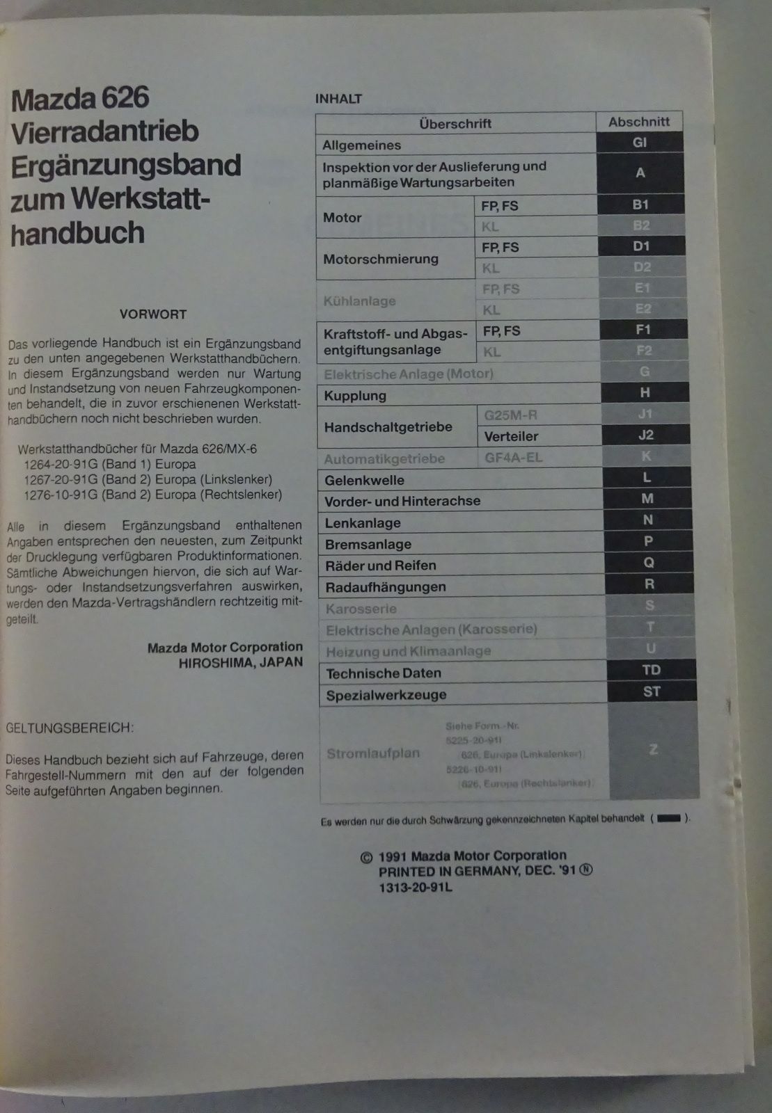 Produktinformationen "Werkstatthandbuch Mazda 626 / MX6 Allrad / Vierradantrieb Motor FS / FP 12/1991"