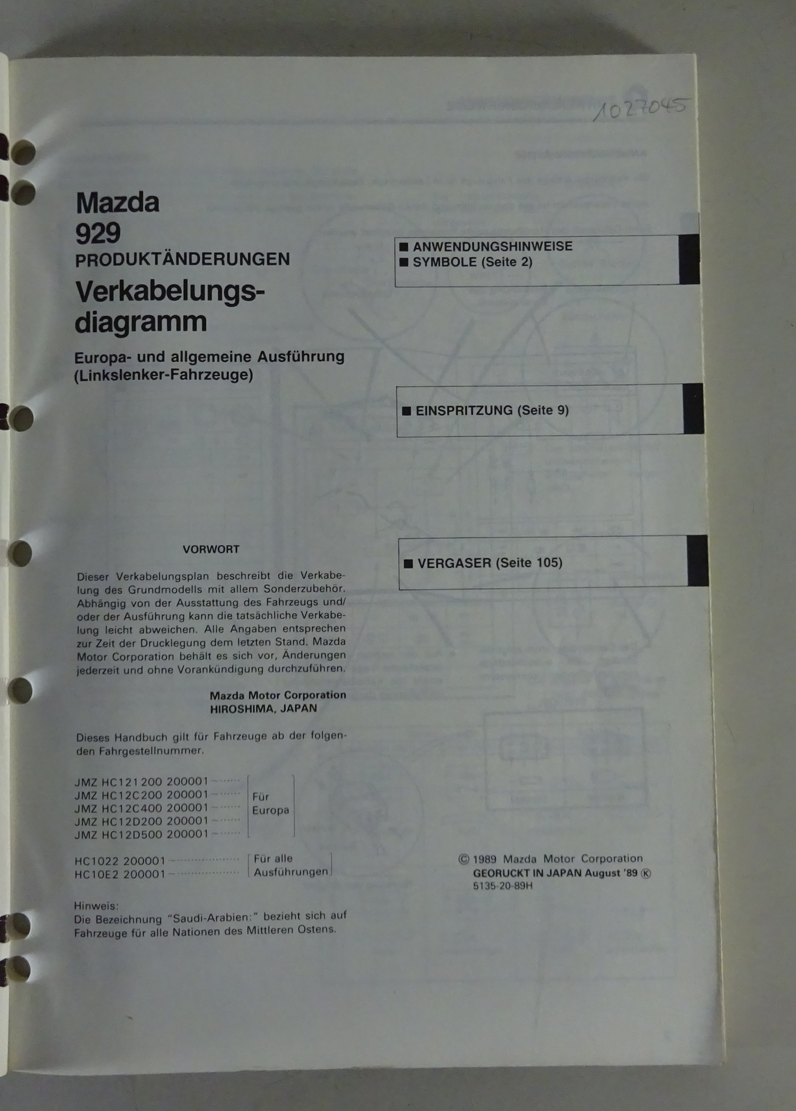 Werkstatthandbuch Elektrik / Verkabelungsdiagramm / Schaltpläne Mazda 929 Typ... mehr
