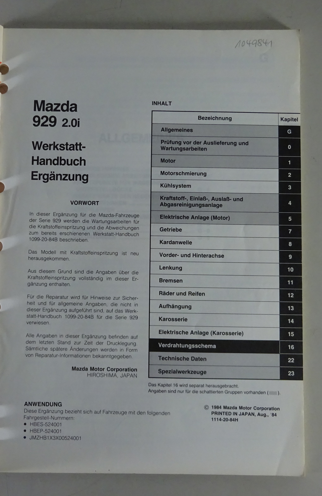 Produktinformationen "Werkstatthandbuch Nachtrag Kraftstoffeinspritzung Mazda 929 2.0i Typ HC von 1984"