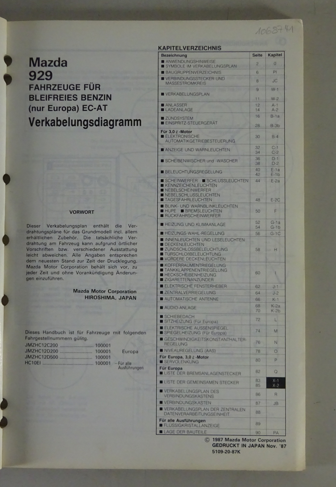 Produktinformationen "Werkstatthandbuch Nachtrag Mazda 929 / Elektrik EC-AT Stand 11/1987"