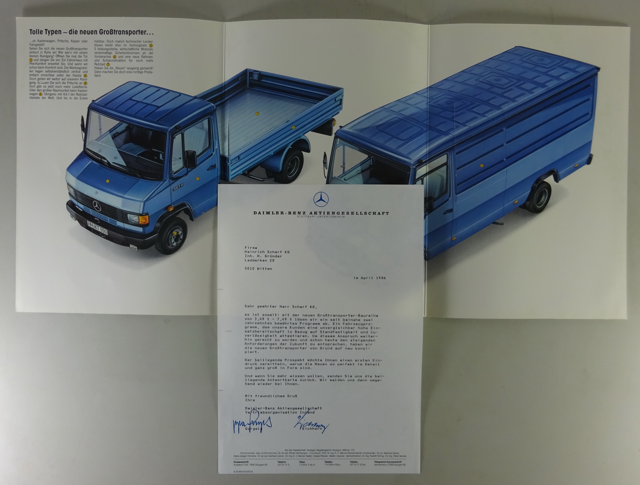 Produktinformationen "Prospekt / Broschüre Mercedes-Benz DüDo T2 Düsseldorfer Transporter Stand 3/1986"