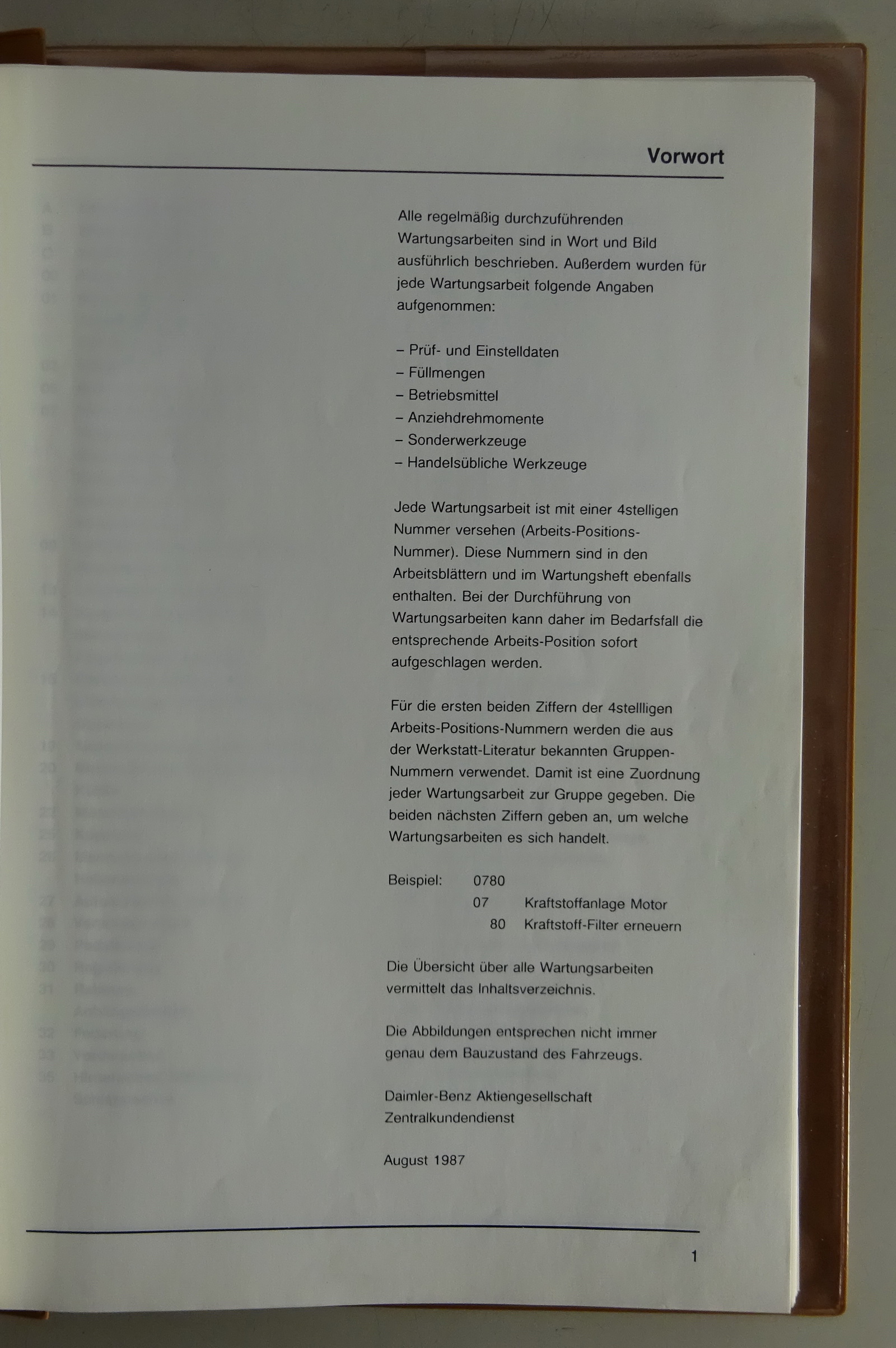 Inhalt: alle regelmäßig durchzuführenden Wartungsarbeiten sind in Wort und Bild ausführlich beschrieben, außerdem wurden für jede Wartungsarbeit folgende Angaben aufgenommen:
