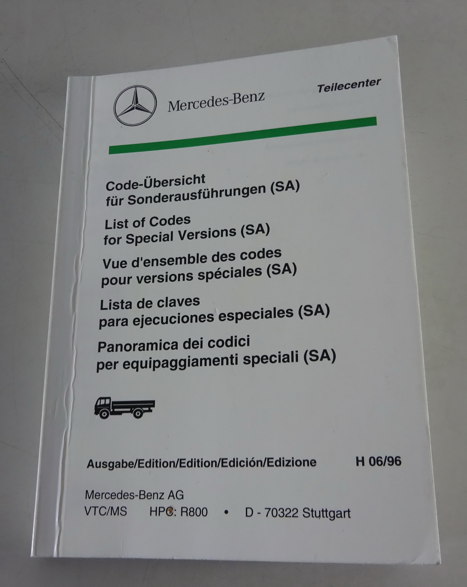 Produktinformationen "Code-Übersicht für Sonderausführungen Mercedes Benz Nutzfahrzeuge Stand 06/1996"