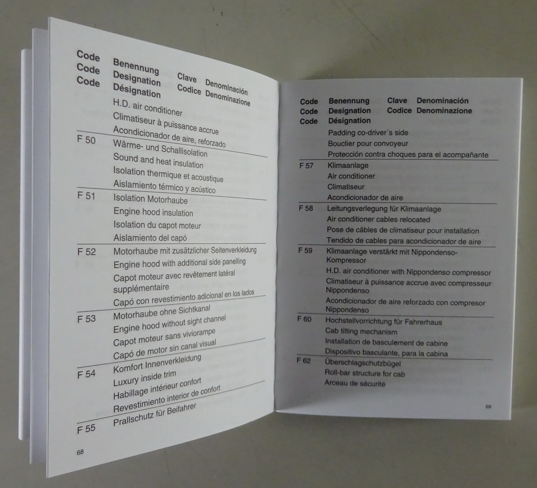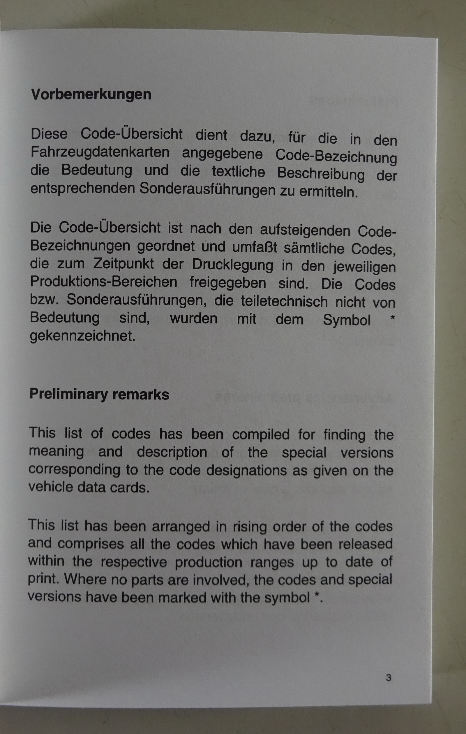 Diese Code-Übersicht dient dazu, für die in den Fahrzeugdatenkarten angegebenen Code-Bezeichnungen die Bedeutung und die textliche Beschreibung der entsprechenden Sonderausführungen zu ermitteln.