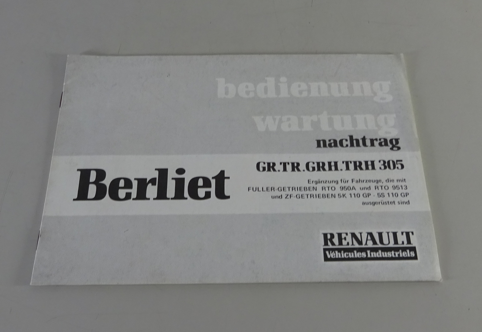 Betriebsanleitung / Handbuch Renault LKW Berliet Nachtrag GR.TR.GRH.TRH 305 1979