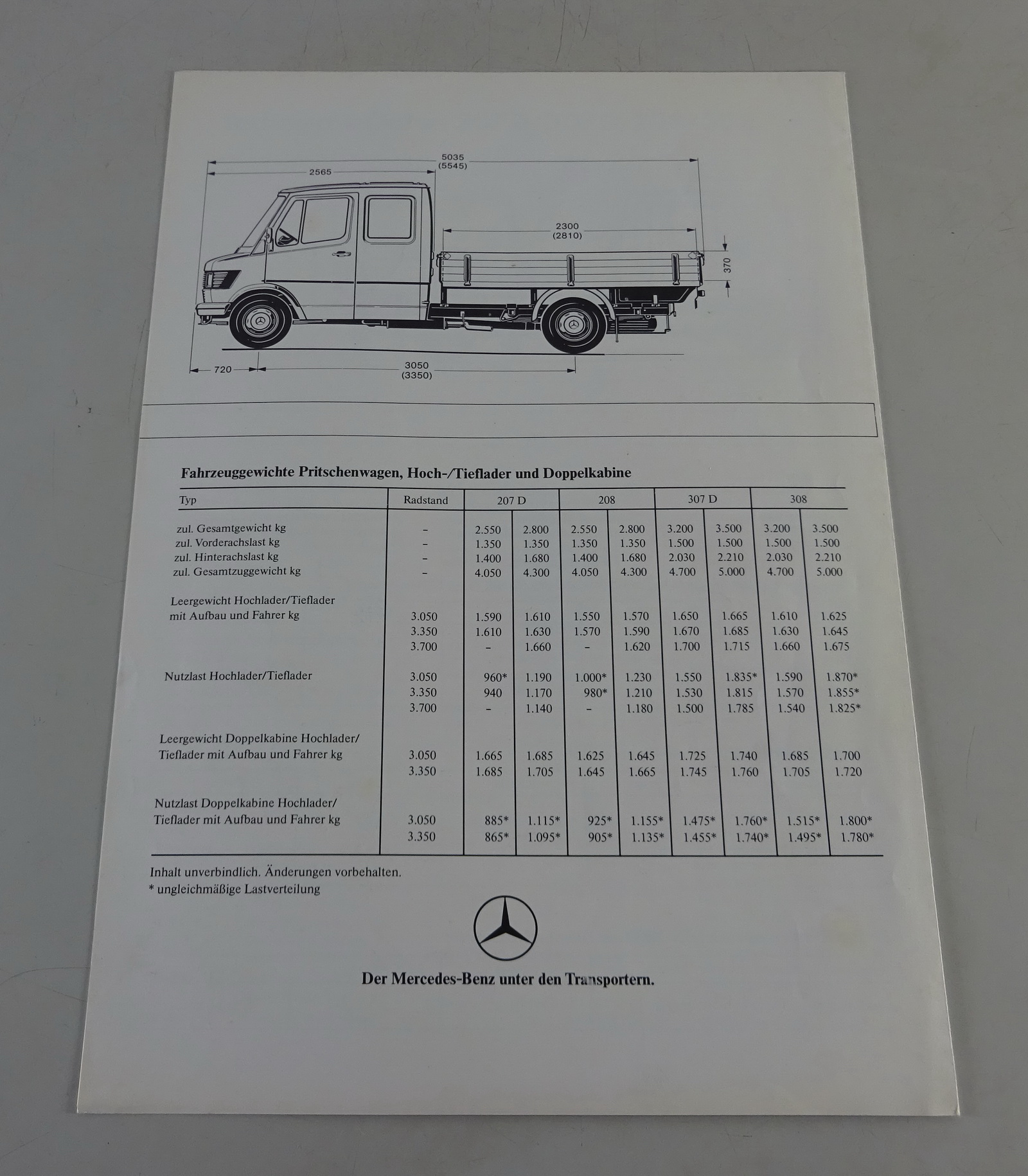Mercedes-BenzT1 Bremer Transporter 207D / 307D / 208 / 308 Pritschenwagen und Doppelkabine