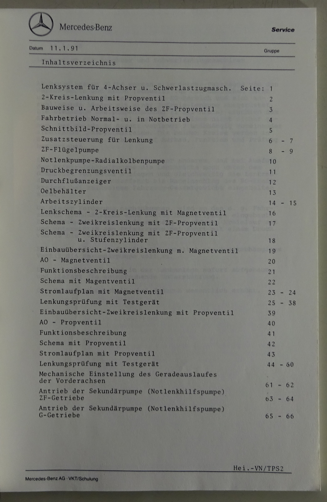Produktinformationen "Werkstatthandbuch Mercedes Benz LKW NG 80 Lenksystem 4-Achsfahrzeuge von 11/1990"