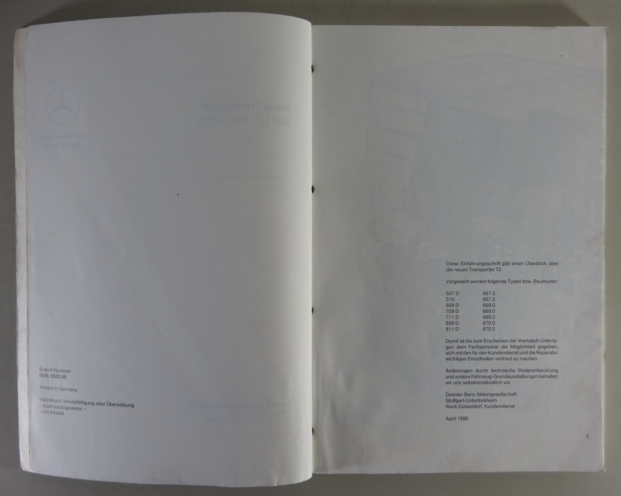 Produktinformationen "Werkstatthandbuch Mercedes-Benz Transporter T2 507 510 609 709 711 809 811 1986"