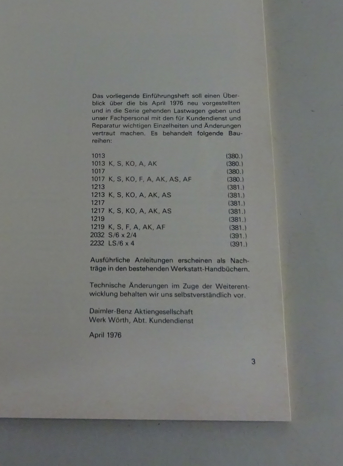 Werkstatthandbuch Einführungsschrift Mercedes LKW NG73 Neutypen von 1976