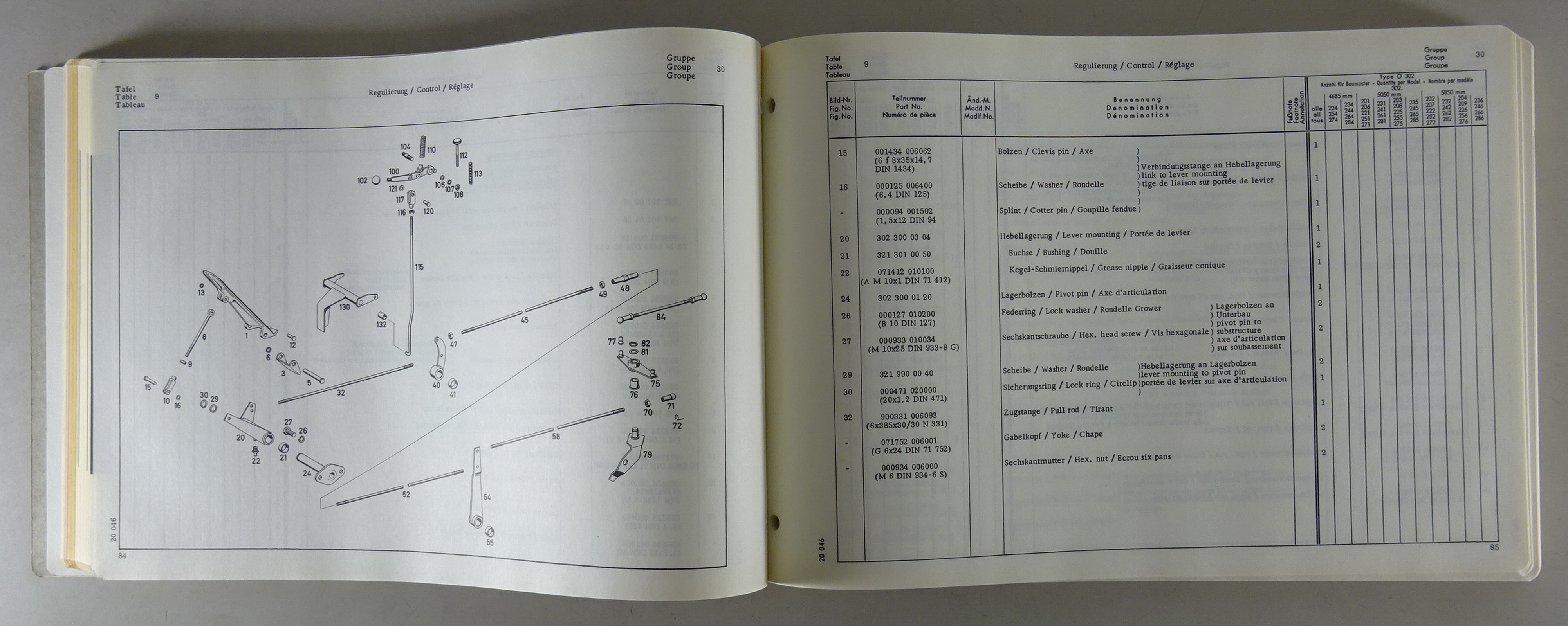 Teilekatalog Fahrgestell Mercedes-Benz Bus Type O 302 Stand 08/1965