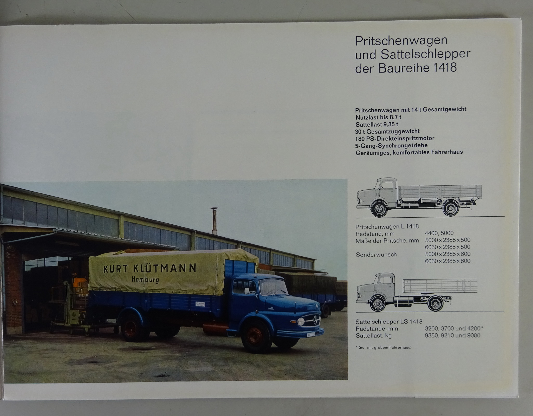 Produktinformationen "Prospekt Mercedes-Benz L/LS 1418 Pritsche + Sattelzugmaschine Stand 09/1965"