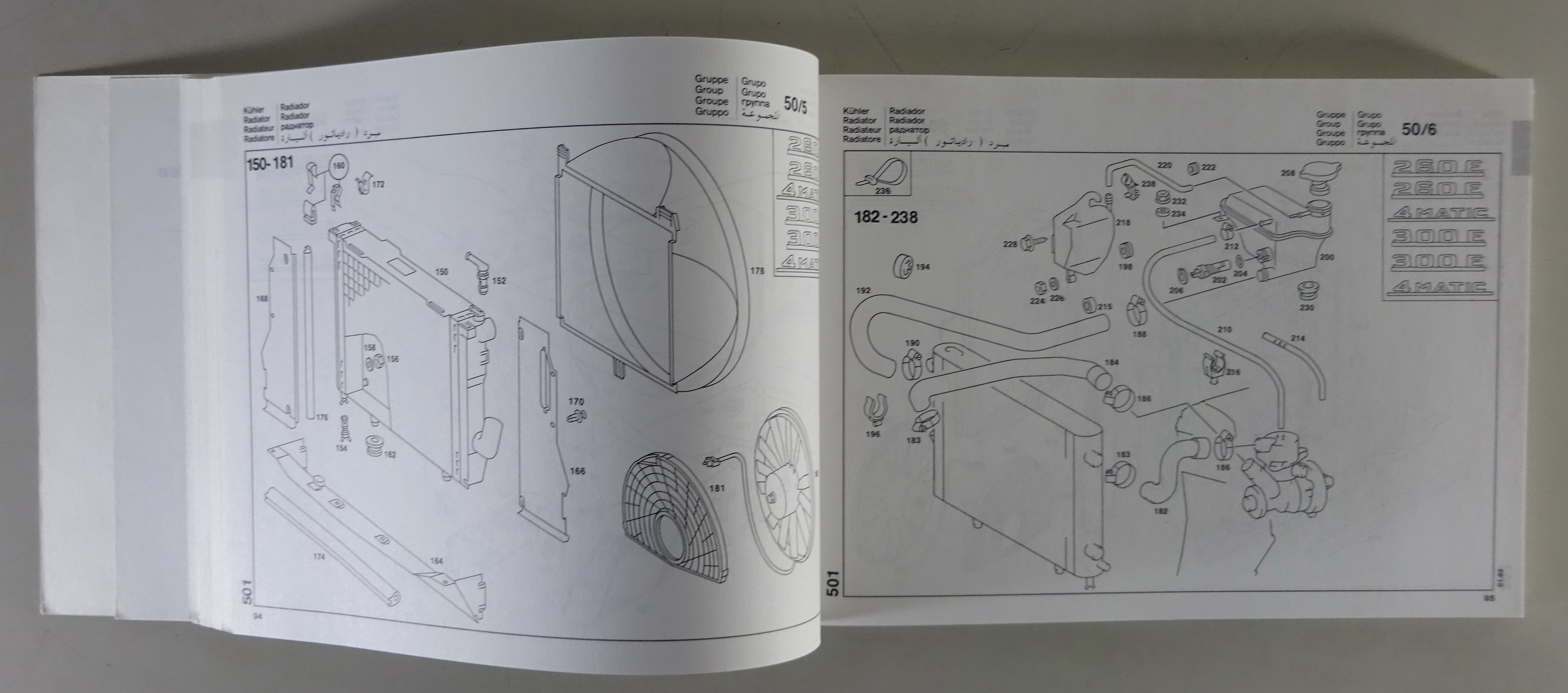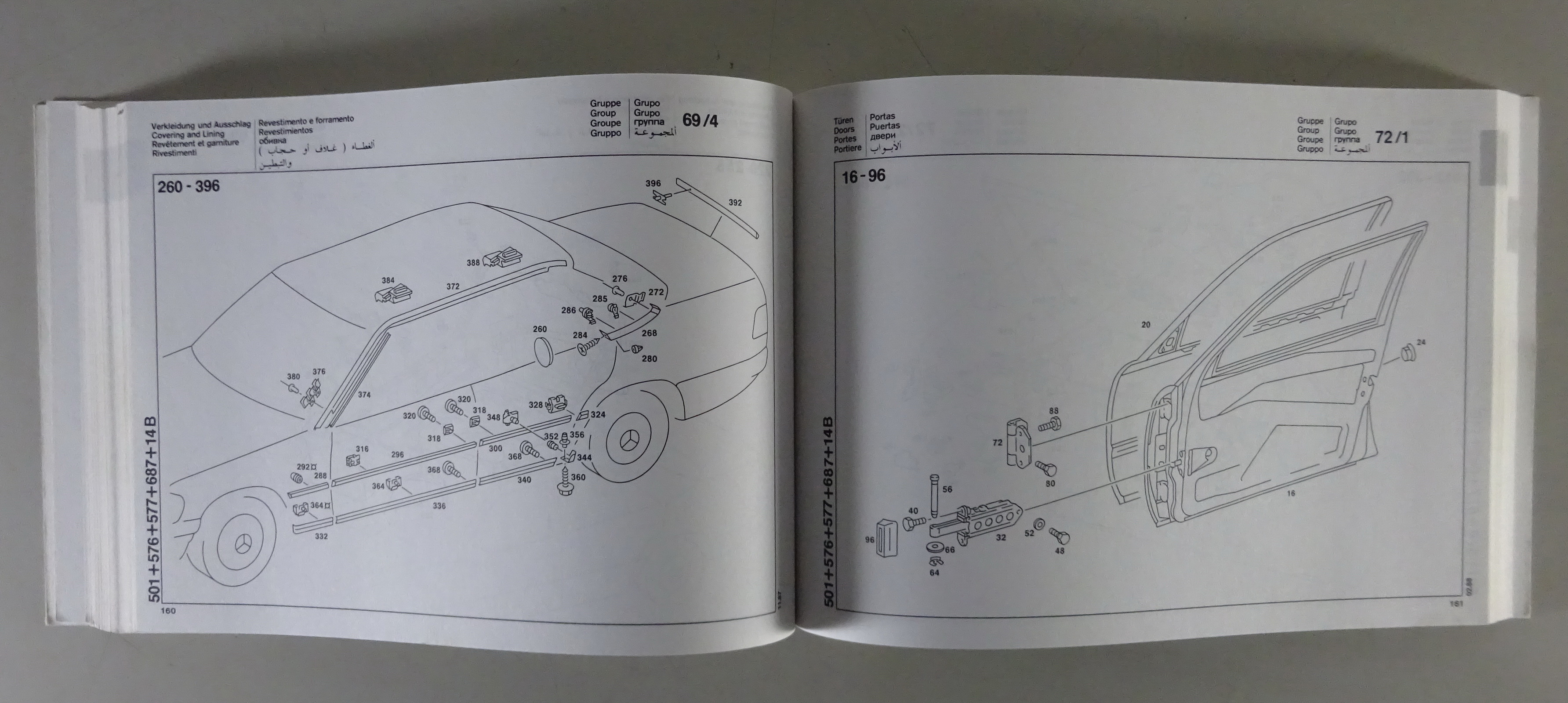 Inhalt: Bildkatalog / Ersatzteilkatalog mit Explosionszeichnungen für Mercedes Originalteile, mit Bildtafelübersicht für u.g. Sprachen
