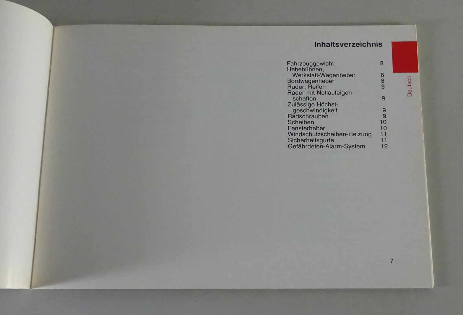Inhalt: Fahrzeugübersicht, Hebebühnen, Bordwagenheber, Räder & Reifen, Höchstgeschwindigkeit, Radschrauben, Scheiben, Fensterheber, Windschutzscheibenheizung, Sicherheitsgurte, Alarm-System