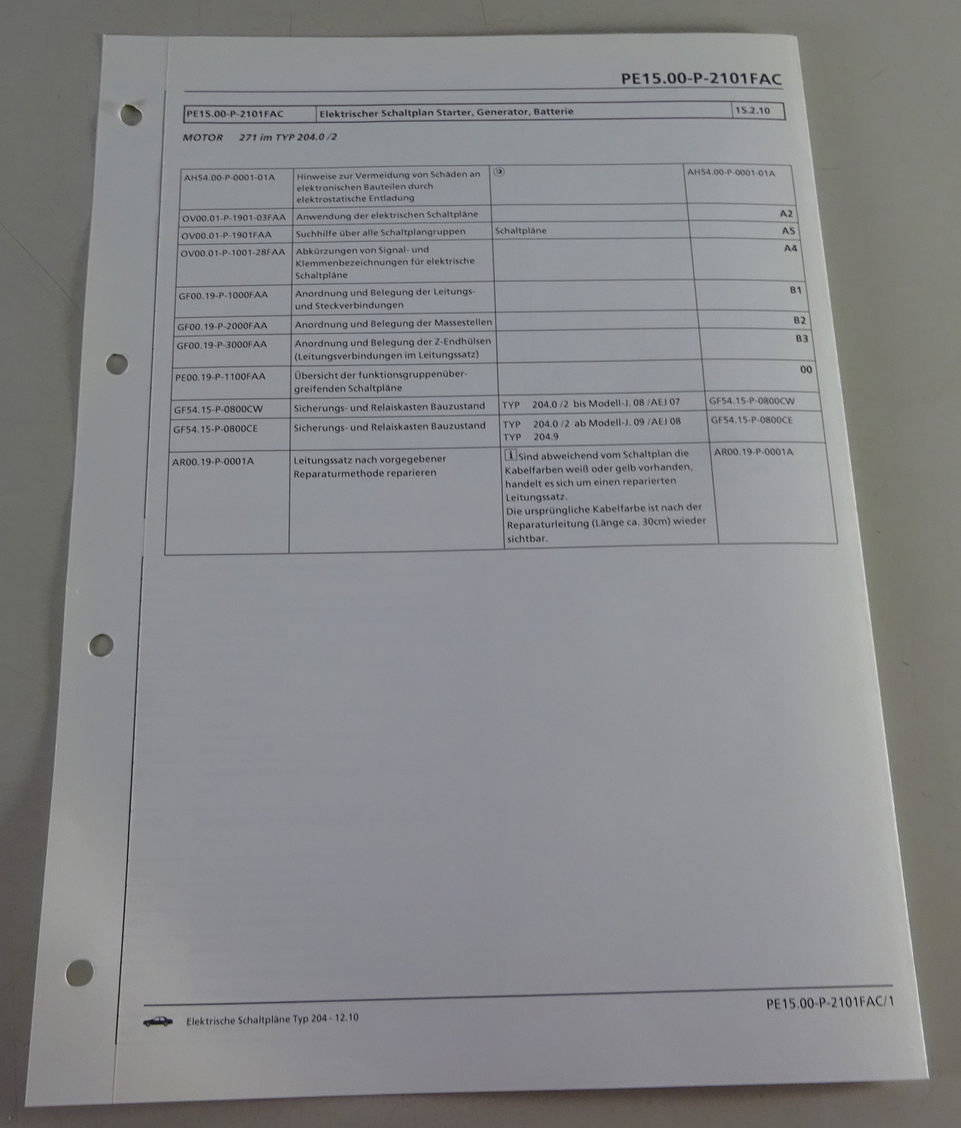 Produktinformationen "Schaltplan Mercedes-Benz W204 Starter, Generator, Batterie | Motor 271 | 12/2010"