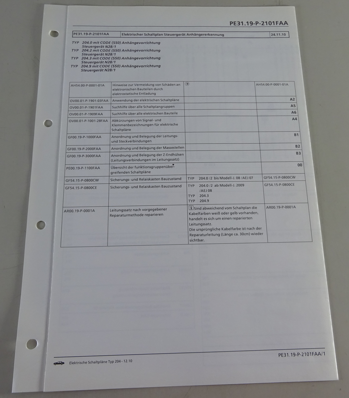 Produktinformationen "Schaltplan Mercedes-Benz W204 Anhängererkennung Typ 204 CODE (505) | Stand 12/10"