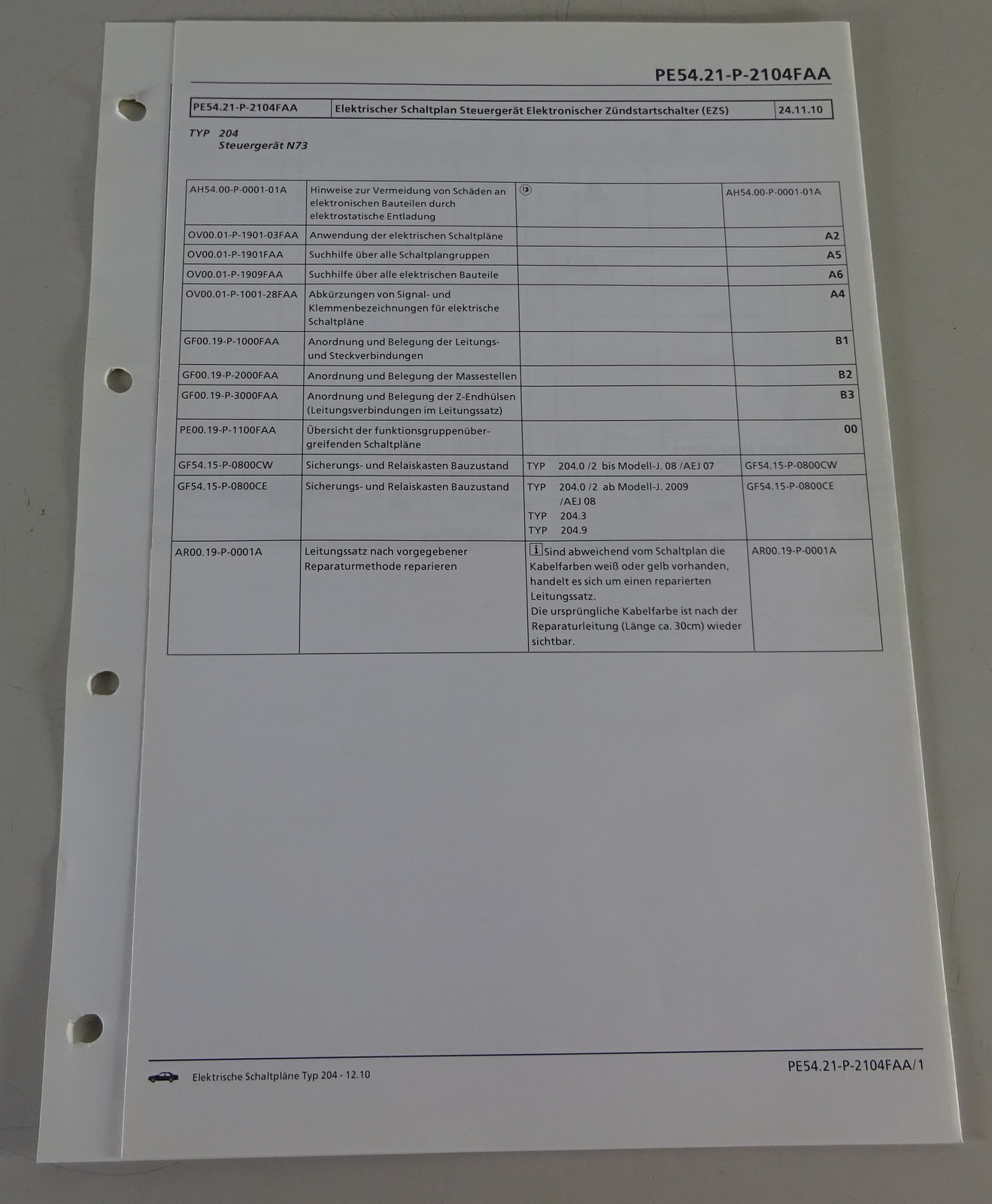 Produktinformationen "Schaltplan Mercedes W204 Elektronischer Zündschalter (EZS) Typ 204 | Stand 12/10"