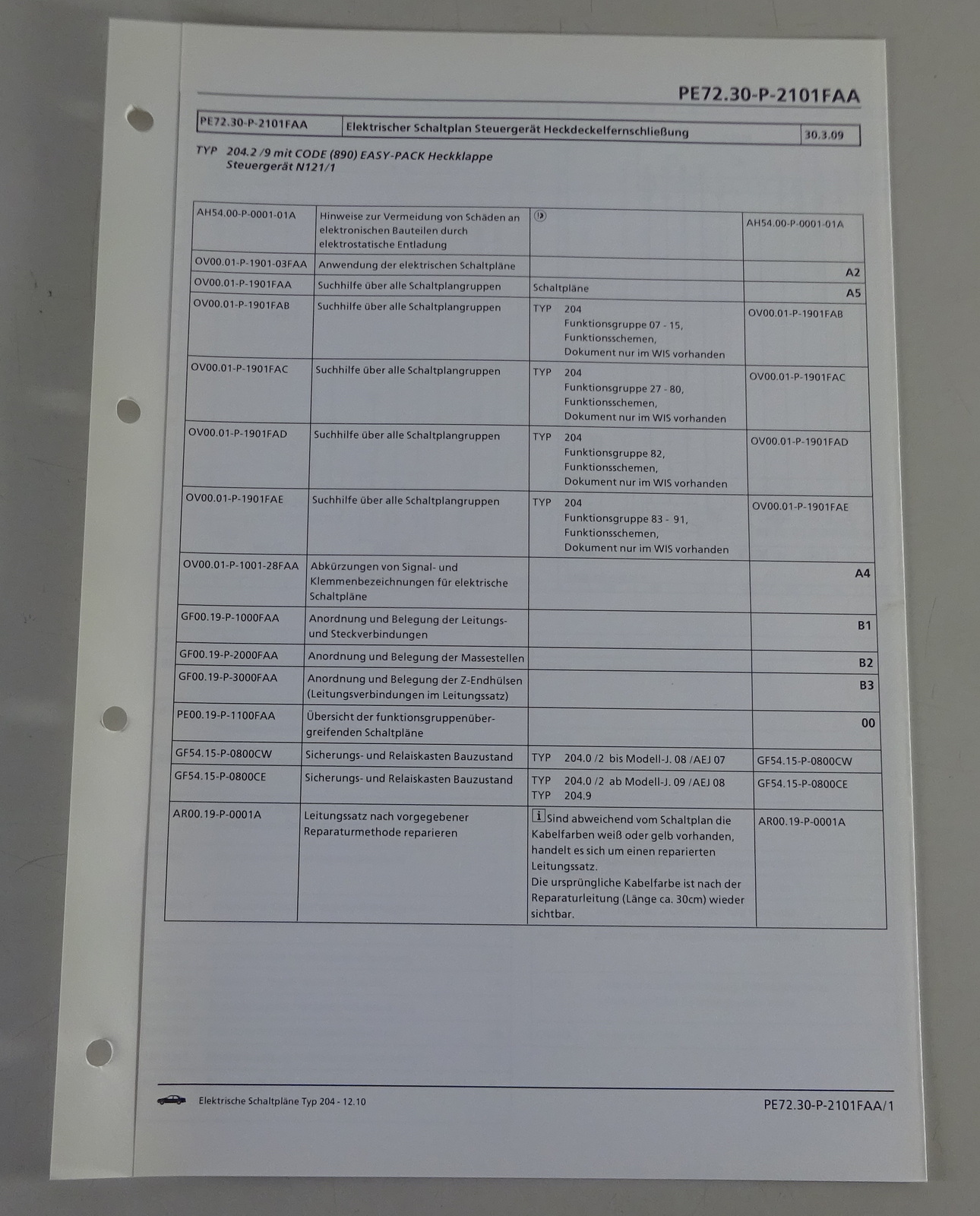 Produktinformationen "Schaltplan Mercedes-Benz W204 Heckdeckelfernschließung CODE (890) Typ 204 12/10"