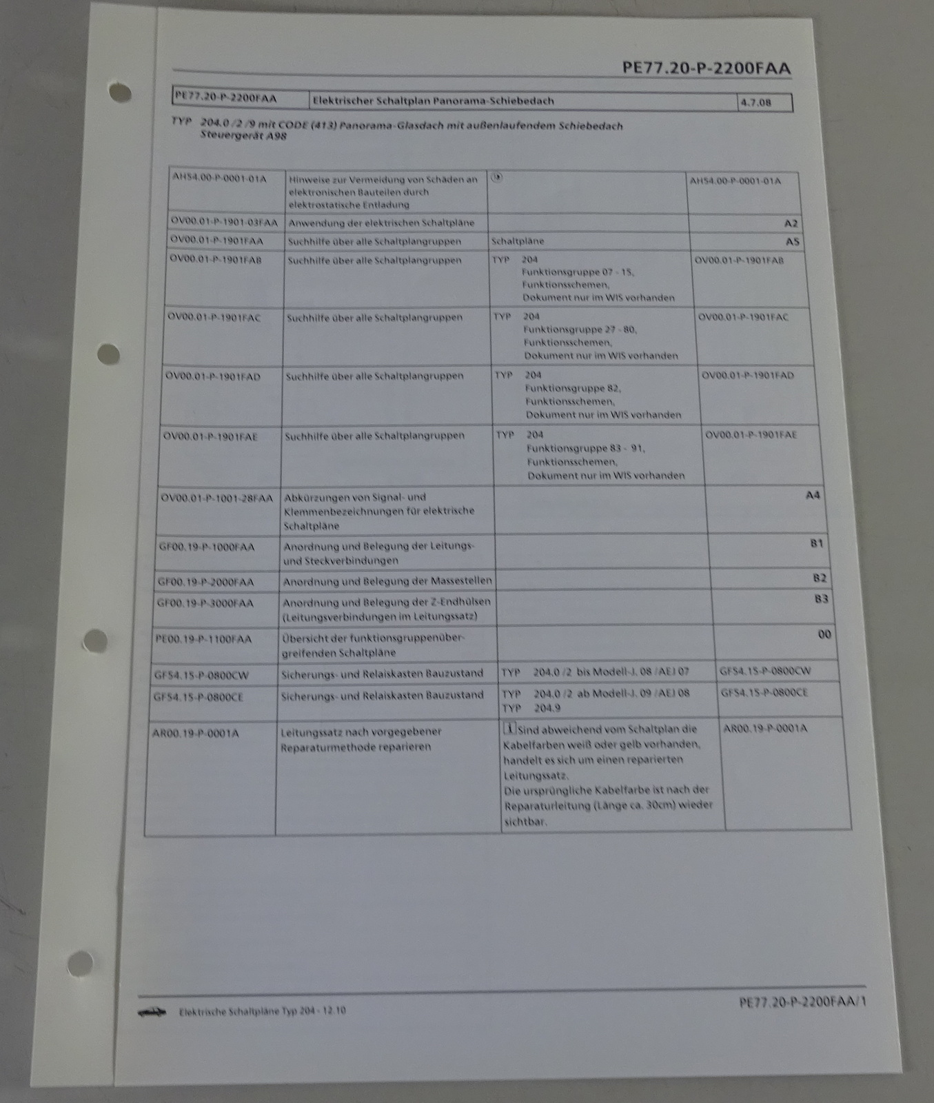 Produktinformationen "Schaltplan Mercedes-Benz W204 Panorama Schiebedach CODE (413) Typ 204 | 12/2010"