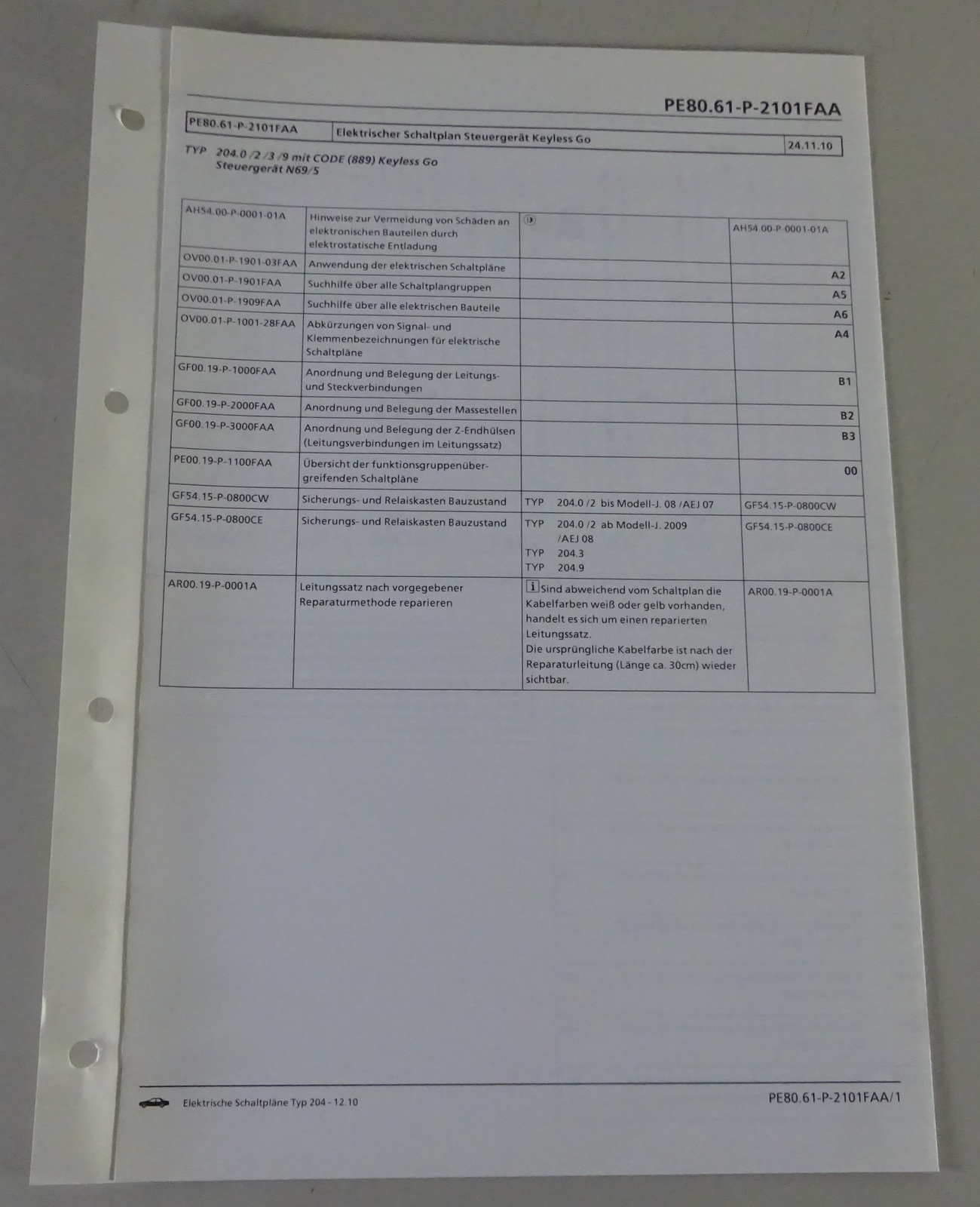 Produktinformationen "Schaltplan Mercedes-Benz W204 Steuergerät Keyless Go | Typ 204 | 12/2010"
