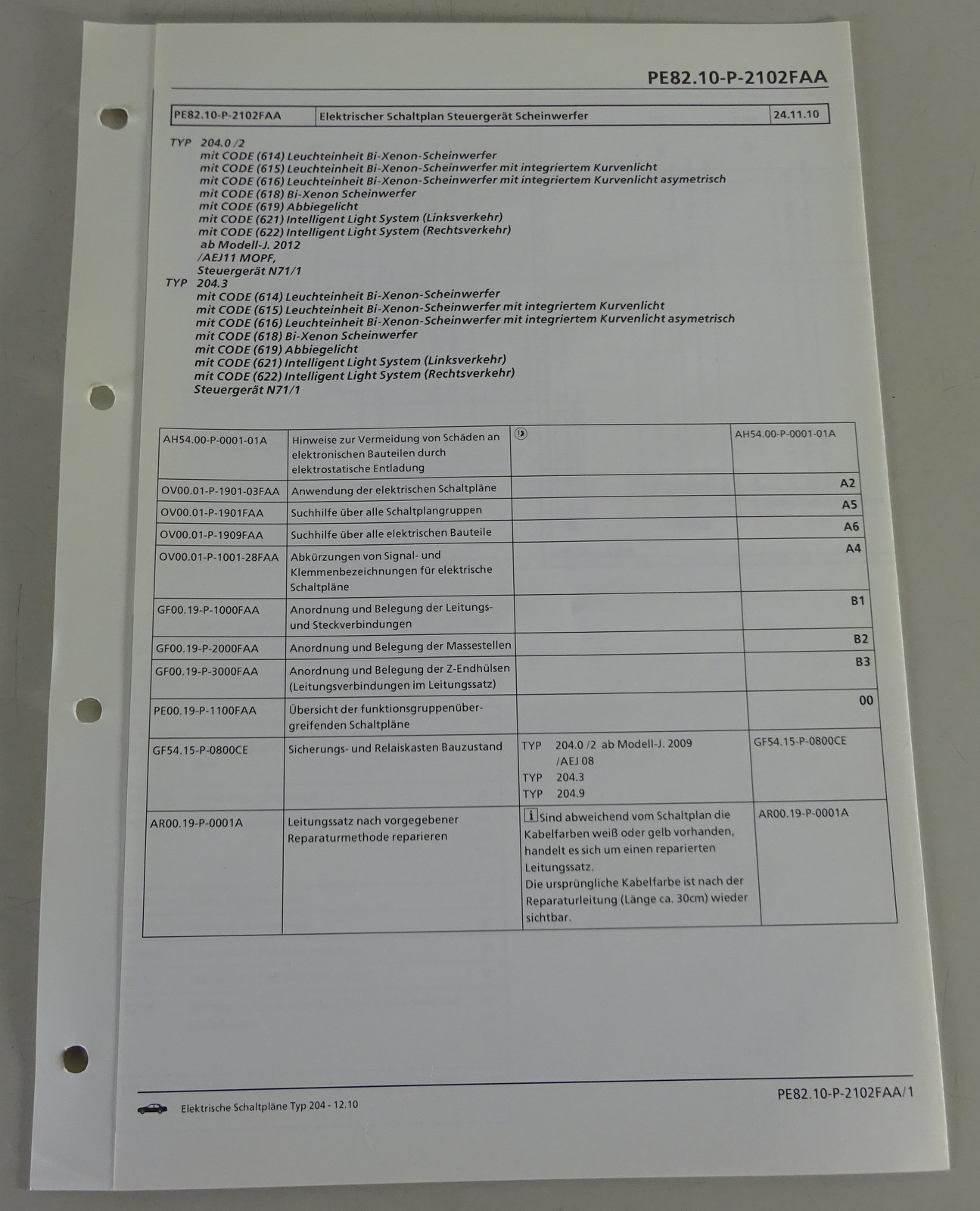 Schaltplan Mercedes-Benz W204 Steuergerät Scheinwerfer | Typ 204 | Stand 12/2010