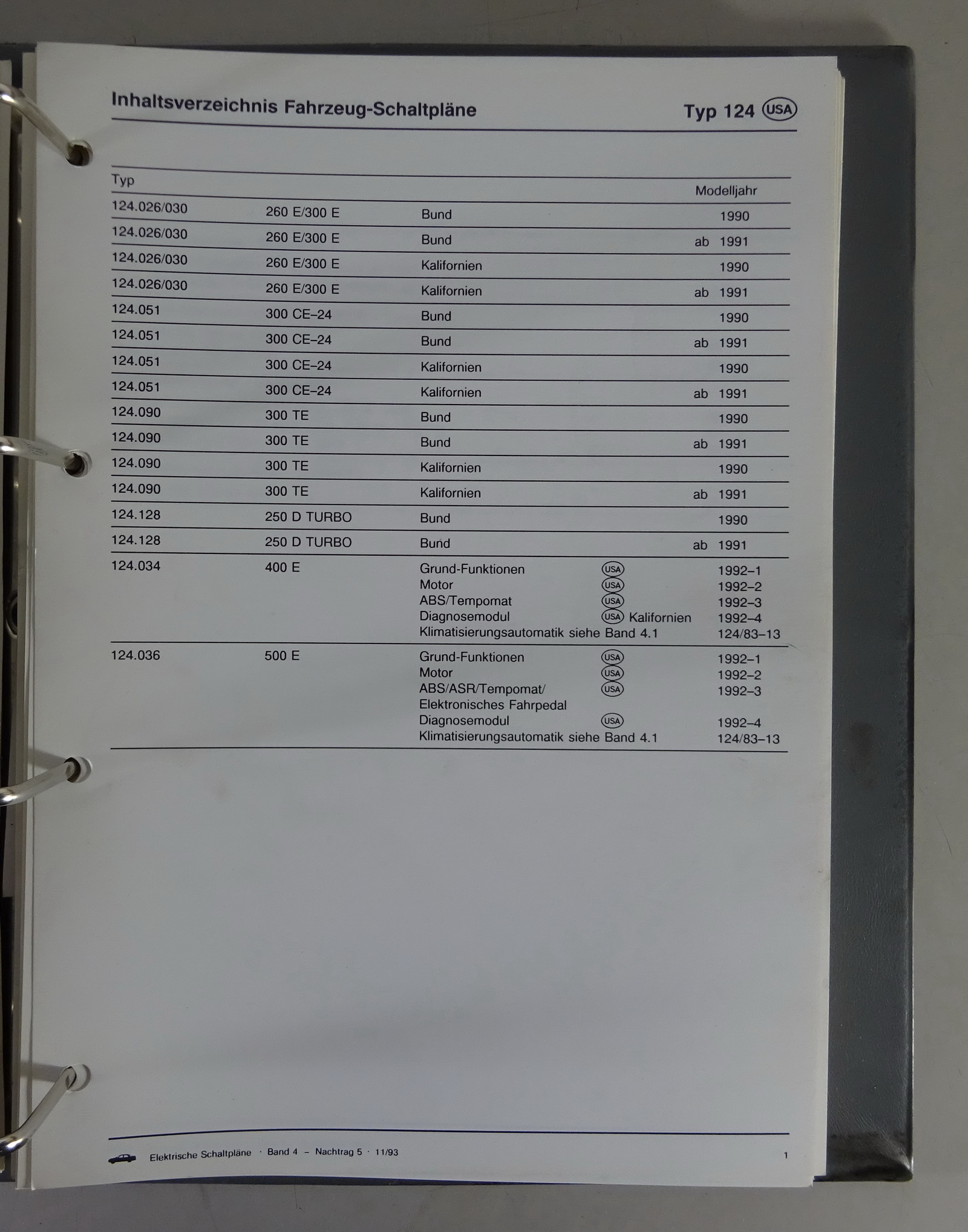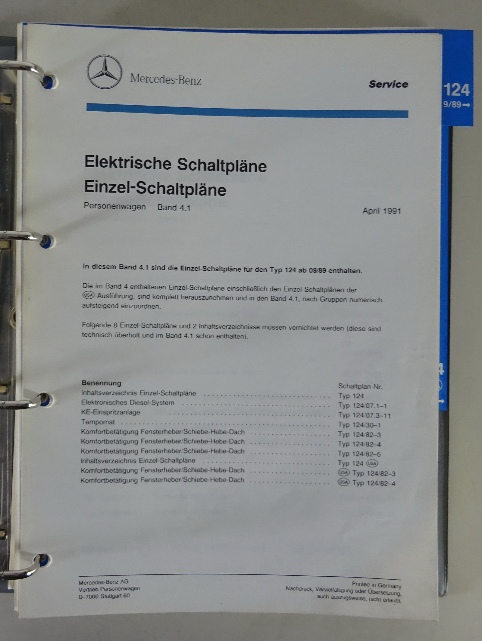 Produktinformationen "Elektrische Schaltpläne + Einzel-Schaltpläne Mercedes-Benz W124 MOPF1 ab 09/1989"