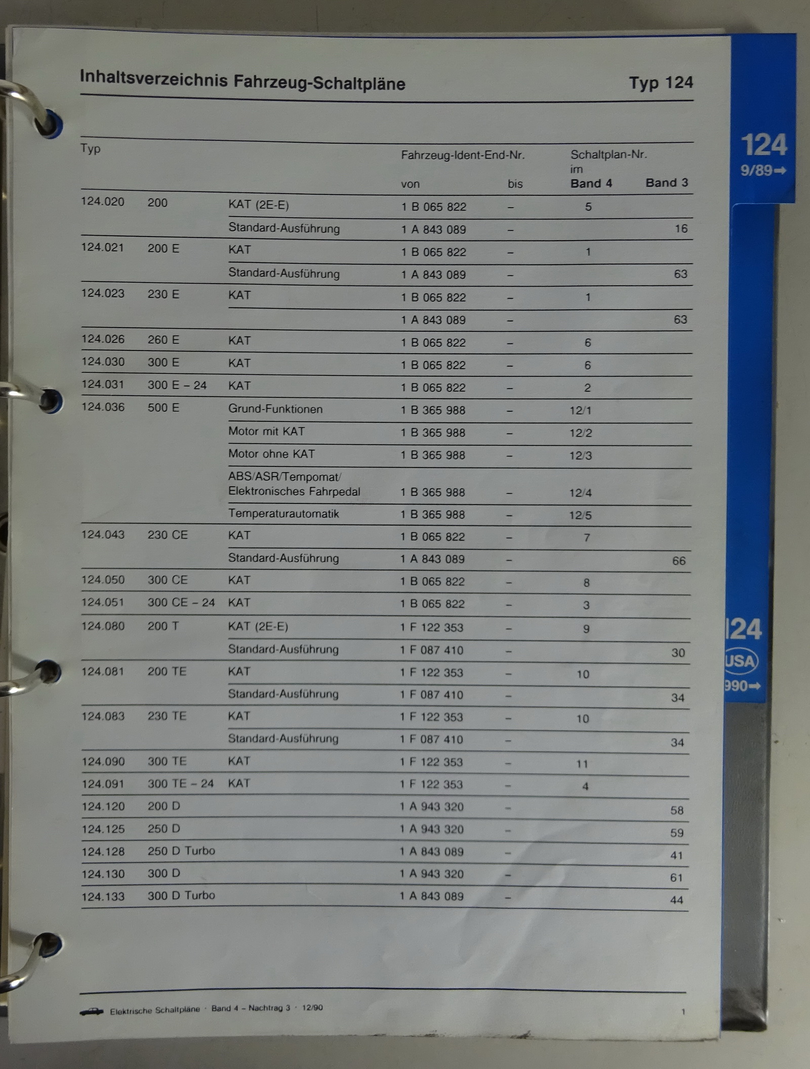Elektrische Schaltpläne + Einzel-Schaltpläne Mercedes-Benz W124 MOPF1 ab 09/1989