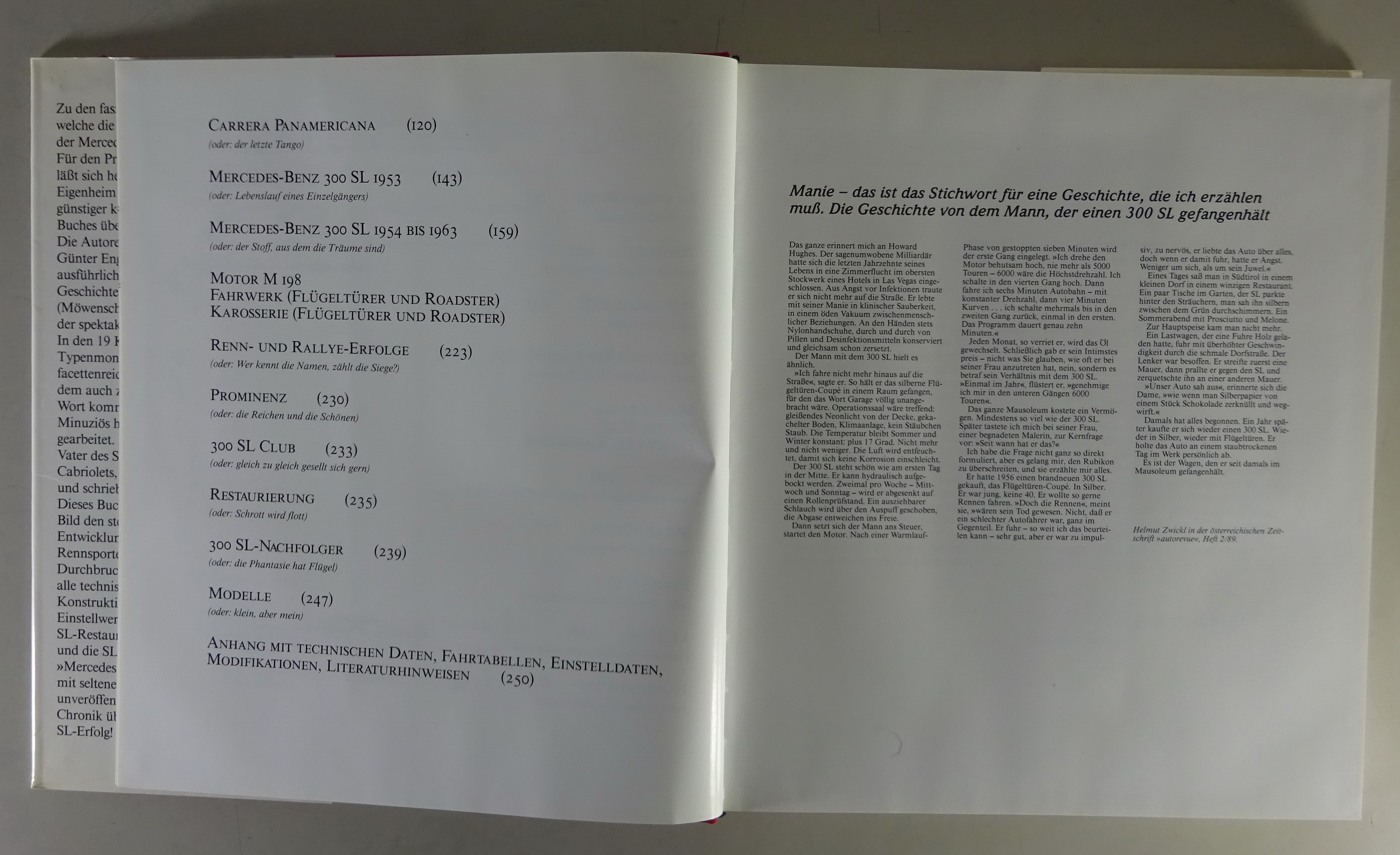 Besondere Kapitel über die SL-Restaurierung, die Sporterfolge und die SL-Nachfolger ergänzen das Werk,