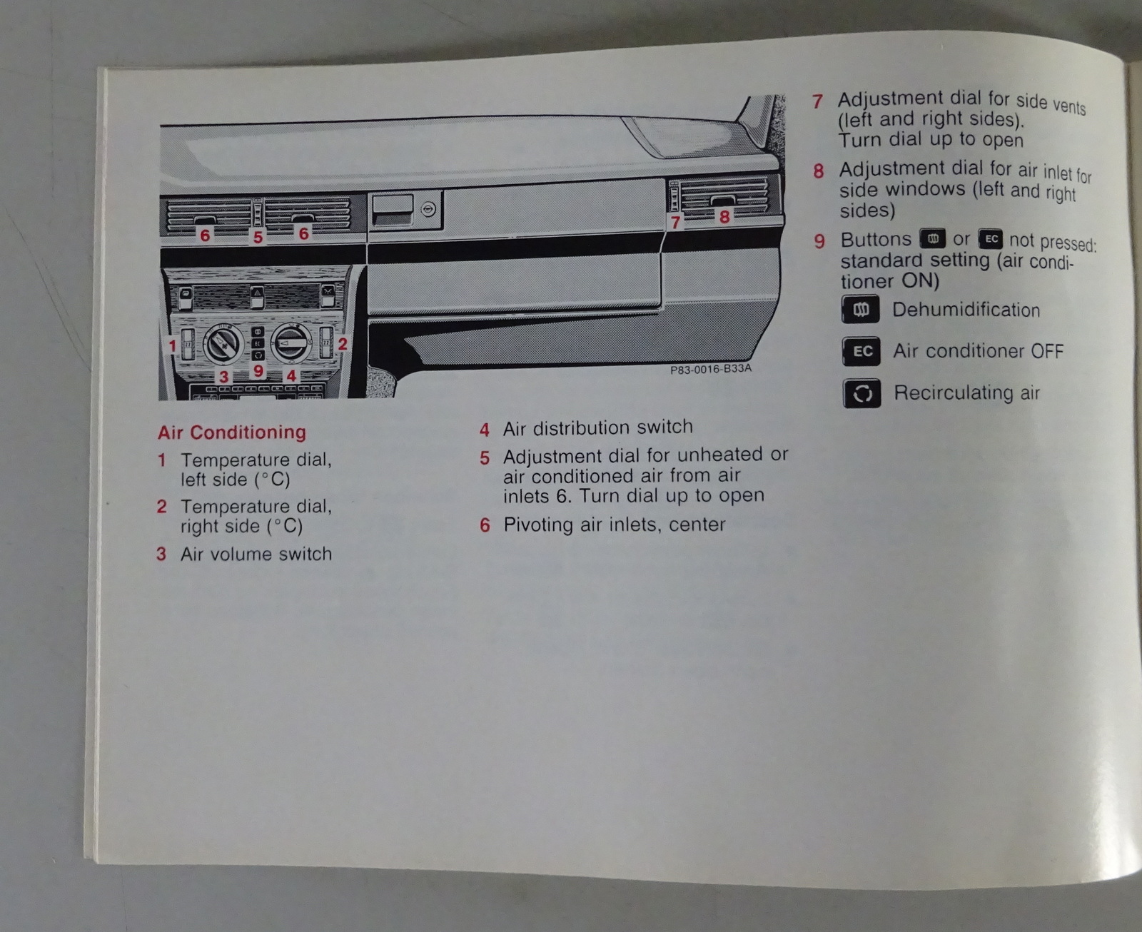 Ergänzung zur Betriebsanleitung Mercedes Benz Klimaanlage im W 124 Stand 08/1987
