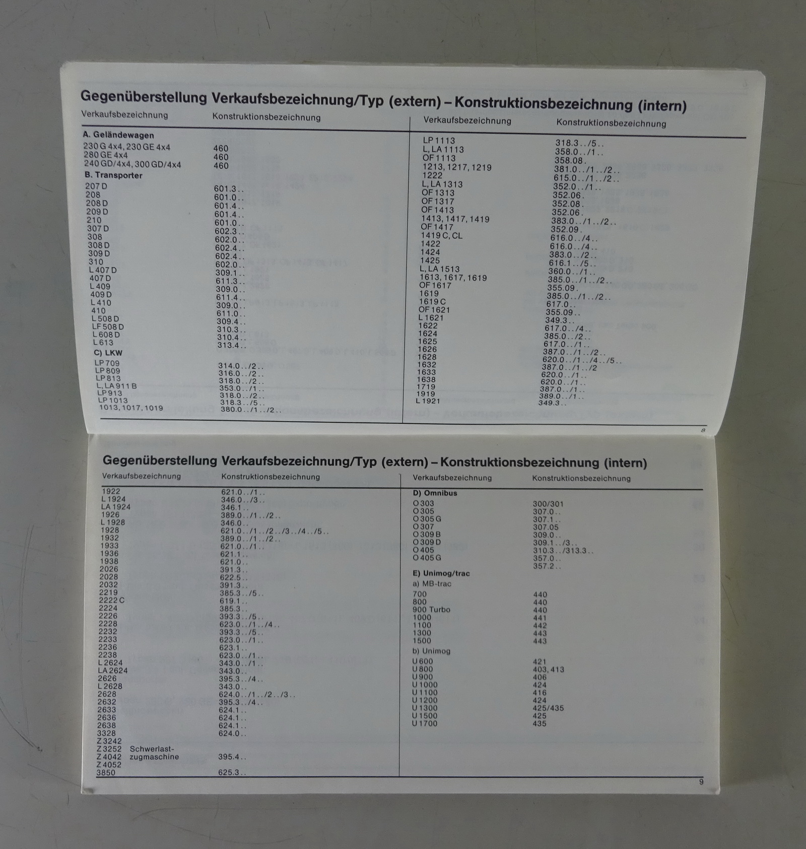 Datenbuch Mercedes-Benz G-Modell W460 / Transporter / LKW / Omnibus Stand 9/1983