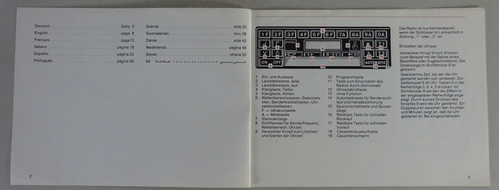 Betriebsanleitung Mercedes-Benz Elektronikradio W116 / R107 / W123 nur Deutsch