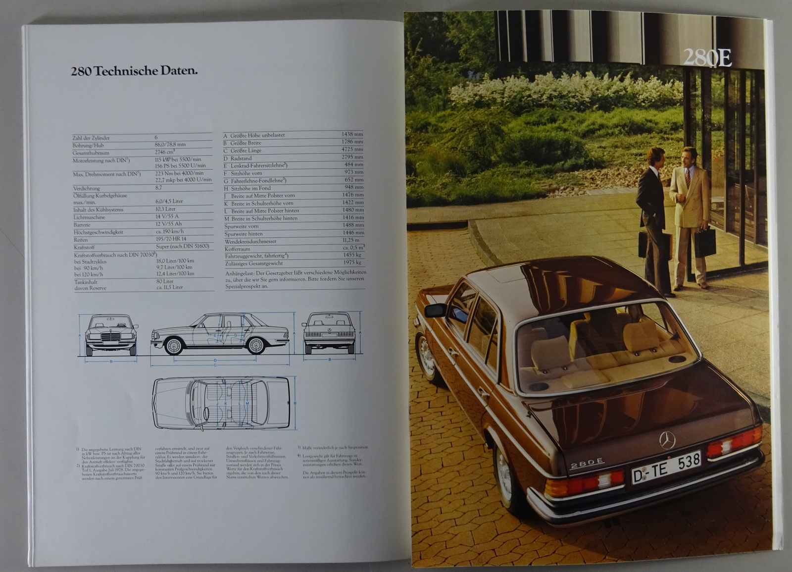 Prospekt / Broschüre Mercedes-Benz W123 280 + 280E Stand 08/1979