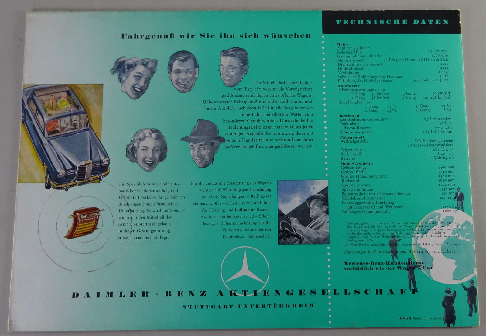Prospekt / Broschüre Mercedes-Benz 180 Ponton W120 Stand ca. 1954