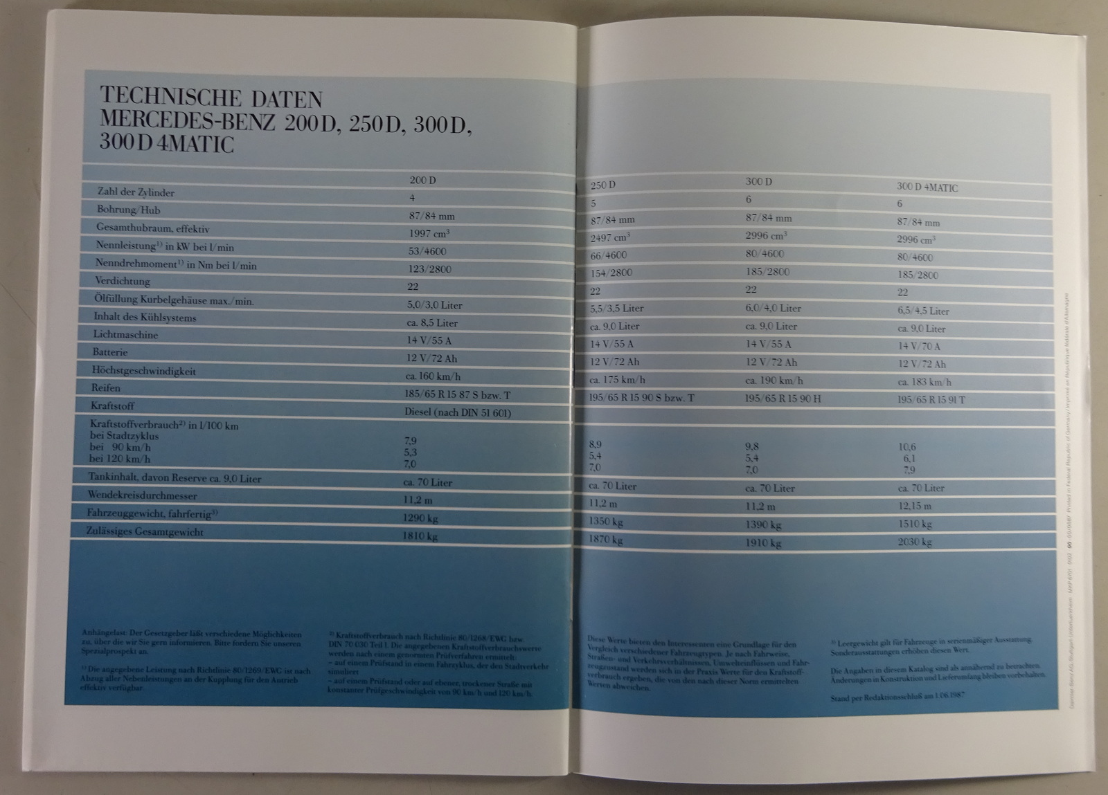 Prospekt / Broschüre Mercedes Benz W124 D-Modelle 200 / 250 / 300 Stand 07/1987