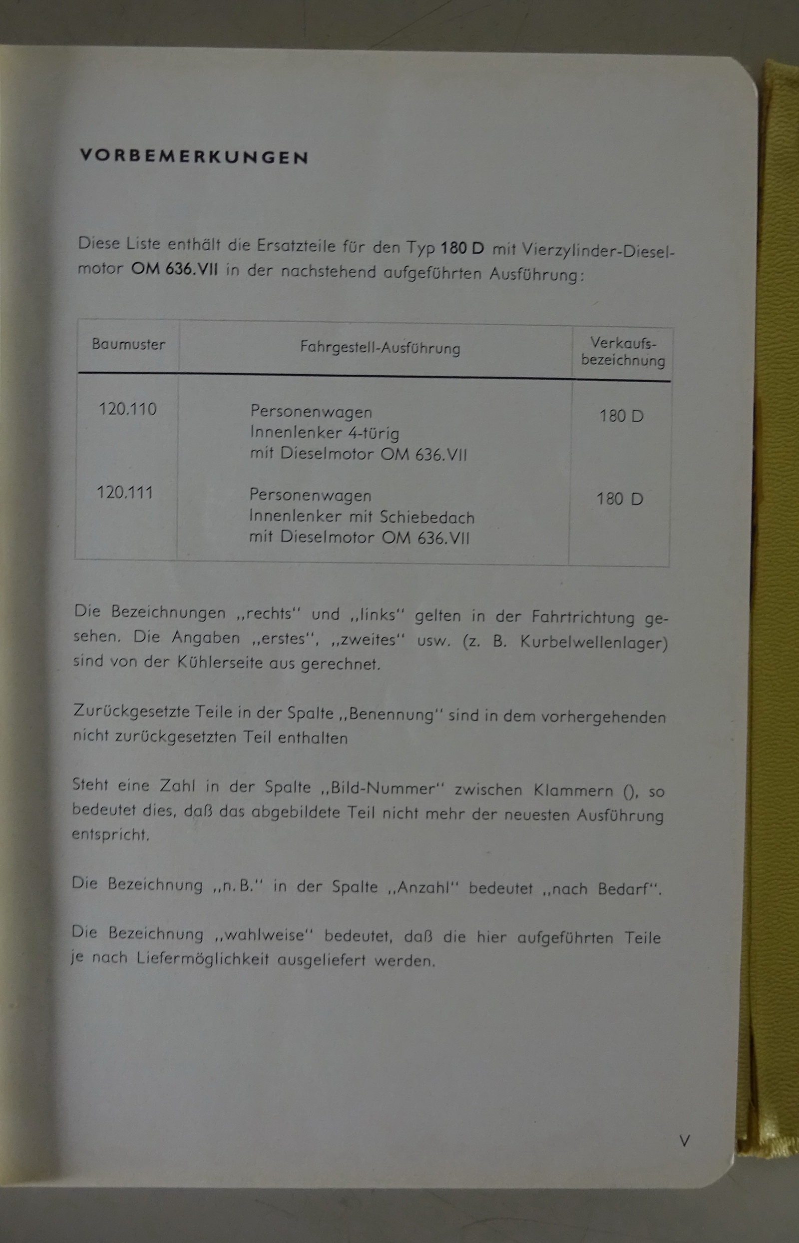 Teilekatalog + Bildkatalog Mercedes-Benz 180 D Ponton Typ W120 Stand 06/1955
