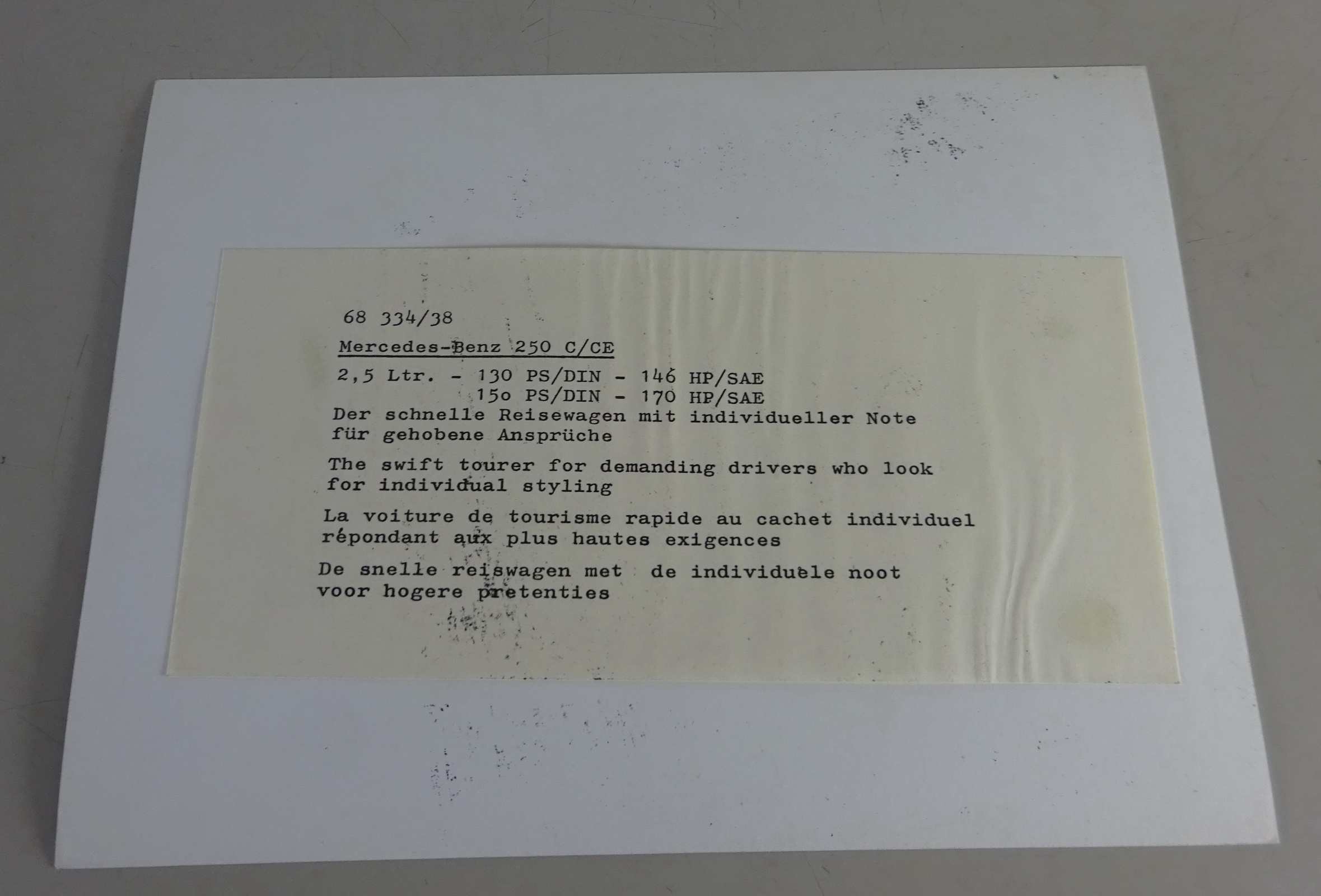 Produktinformationen "Pressefoto Mercedes-Benz W114 /8 250 C / CE | 130PS & 150PS - original"