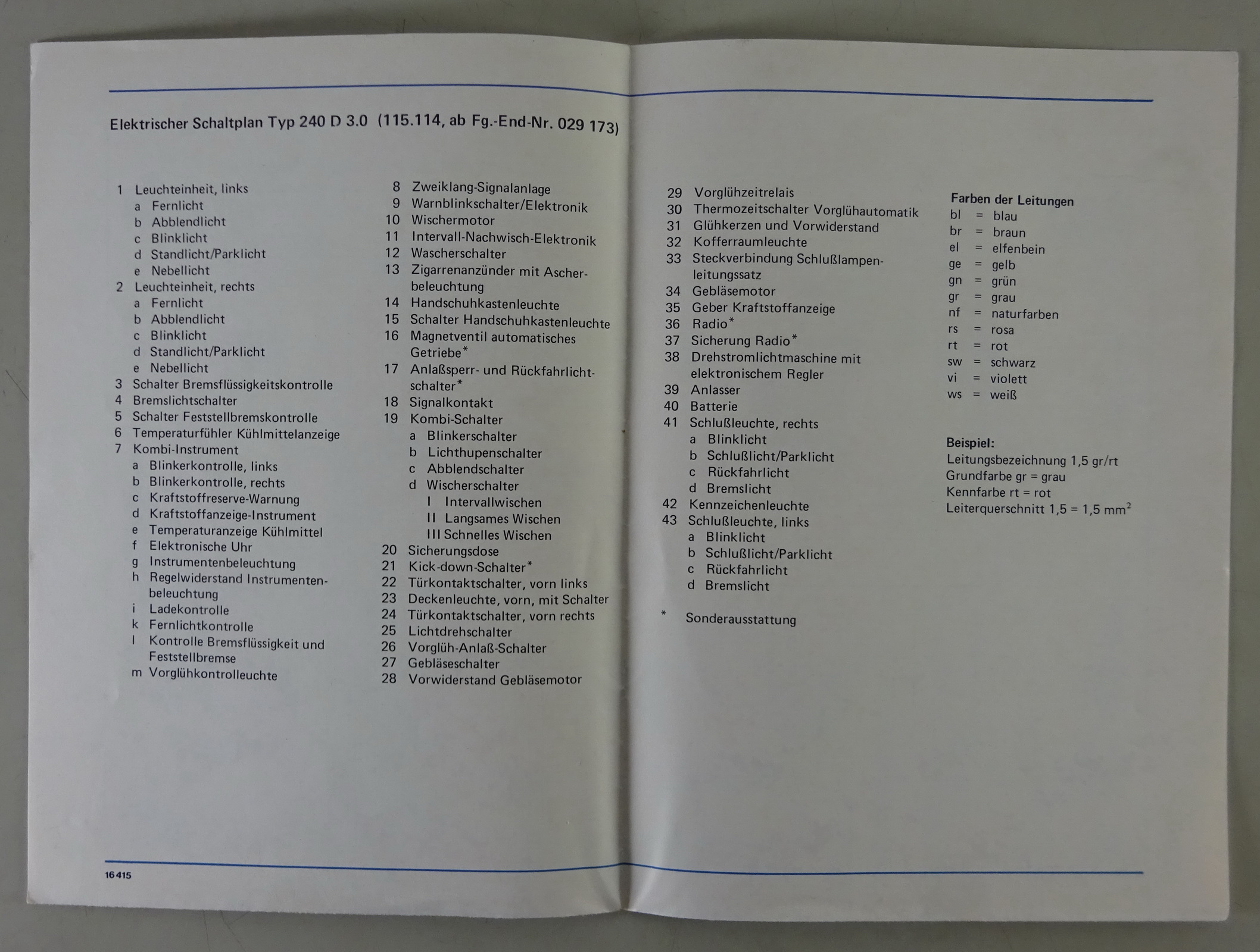 Elektrischer Schaltplan Mercedes-Benz /8 W115 240 D 3.0 Stand 08/1976