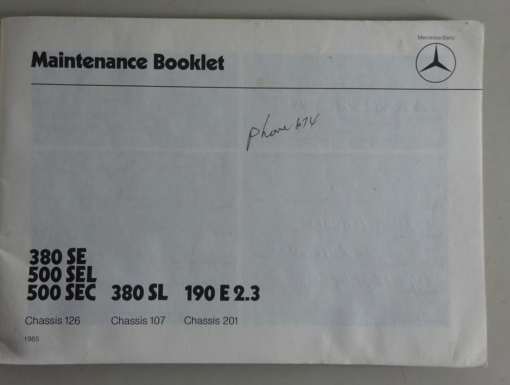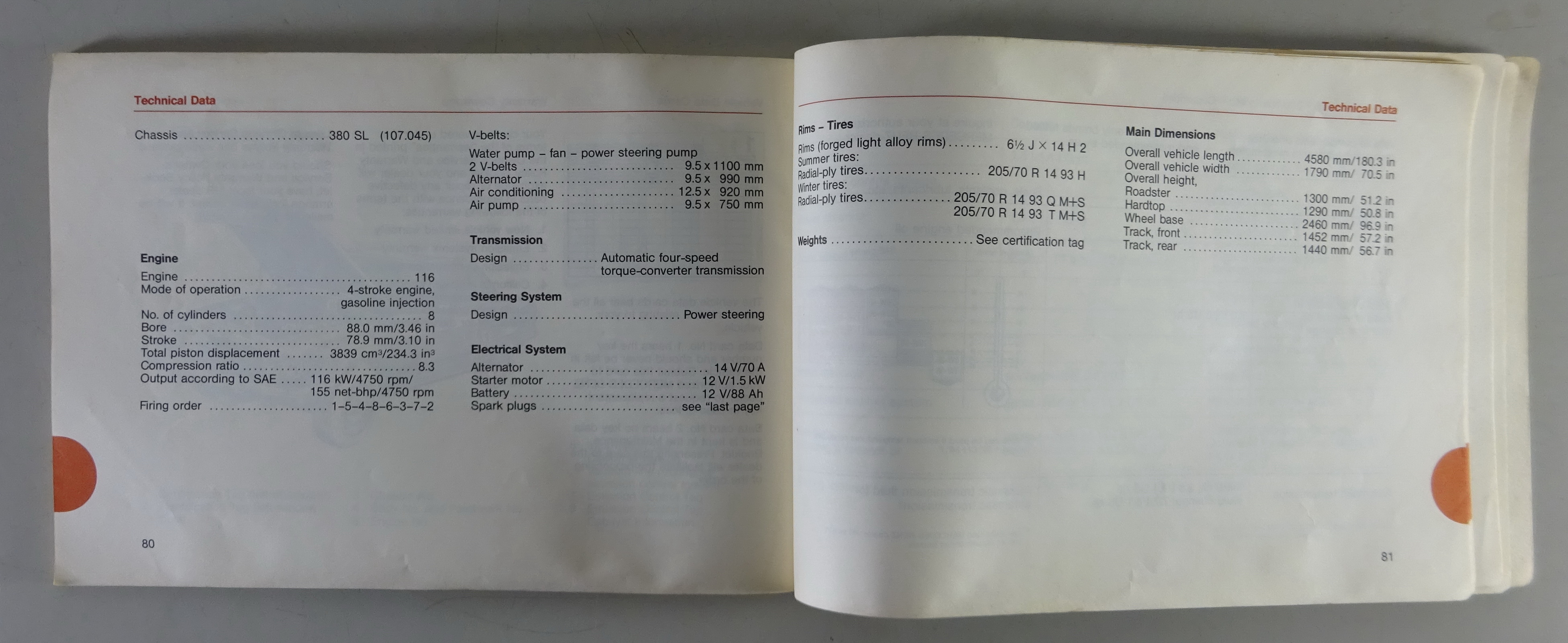 Wallet + Owner´s Manual / Handbook Mercedes-Benz 380 SL Type R107 from 09/1984