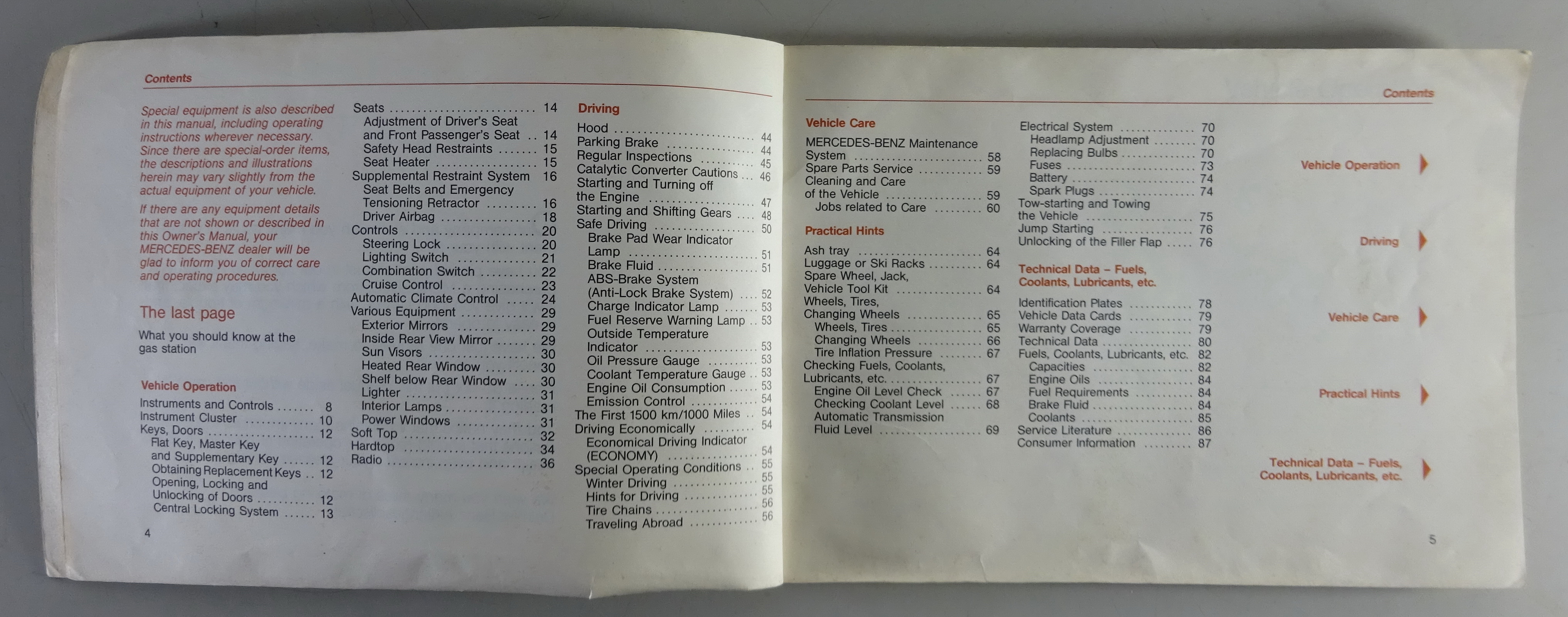 Instruments and Controls, Driving Instructions, Vehicle Maintenance, Operating, Practical Tips, Technical Data, etc.