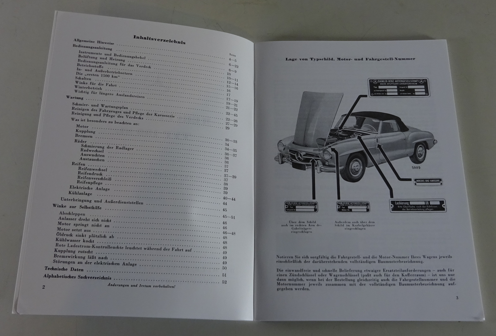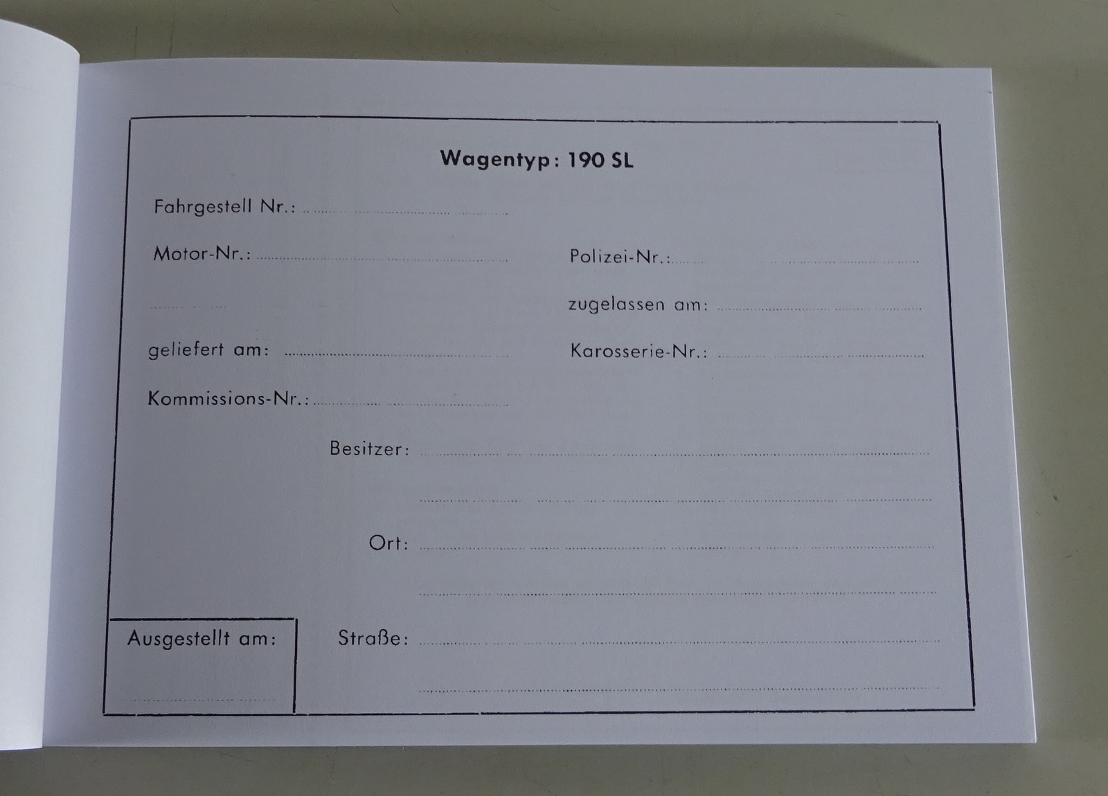 Bordmappe + Betriebsanleitung Mercedes-Benz Typ 190 SL R121 Ausgabe 08/1956