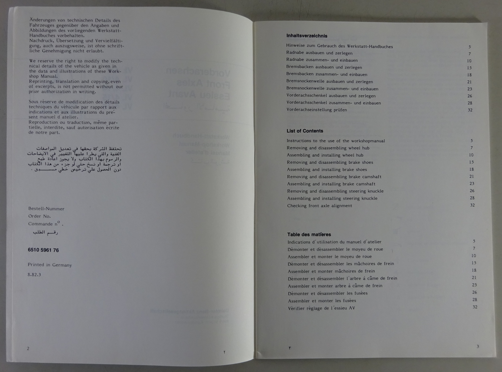 Werkstatthandbuch Mercedes-Benz Vorderachsen VL 4/9 4/10 4/14 4/15 Stand 08/1982