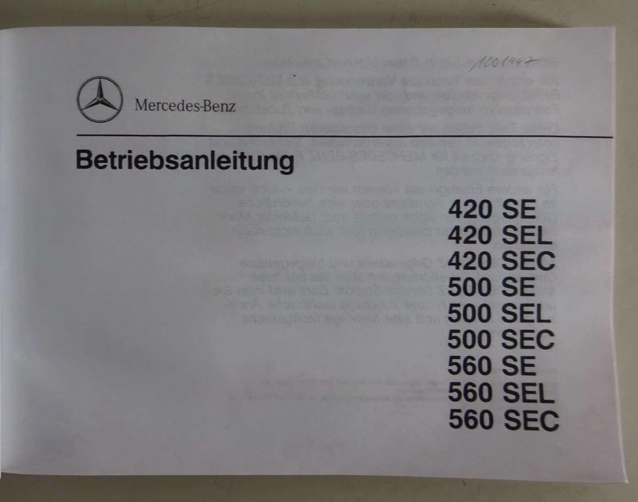 Betriebsanleitung Mercedes-Benz W126 S-Klasse 420 SE - 560 SEC Stand 1989