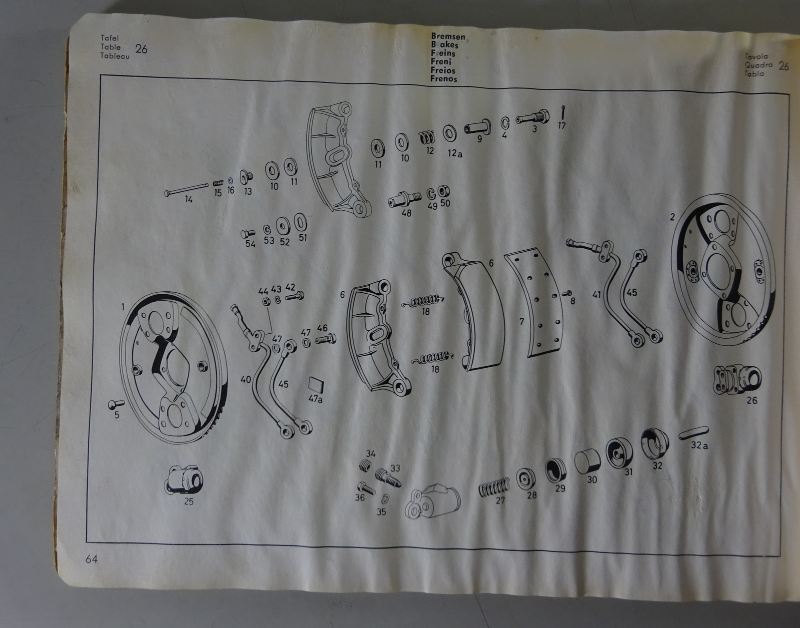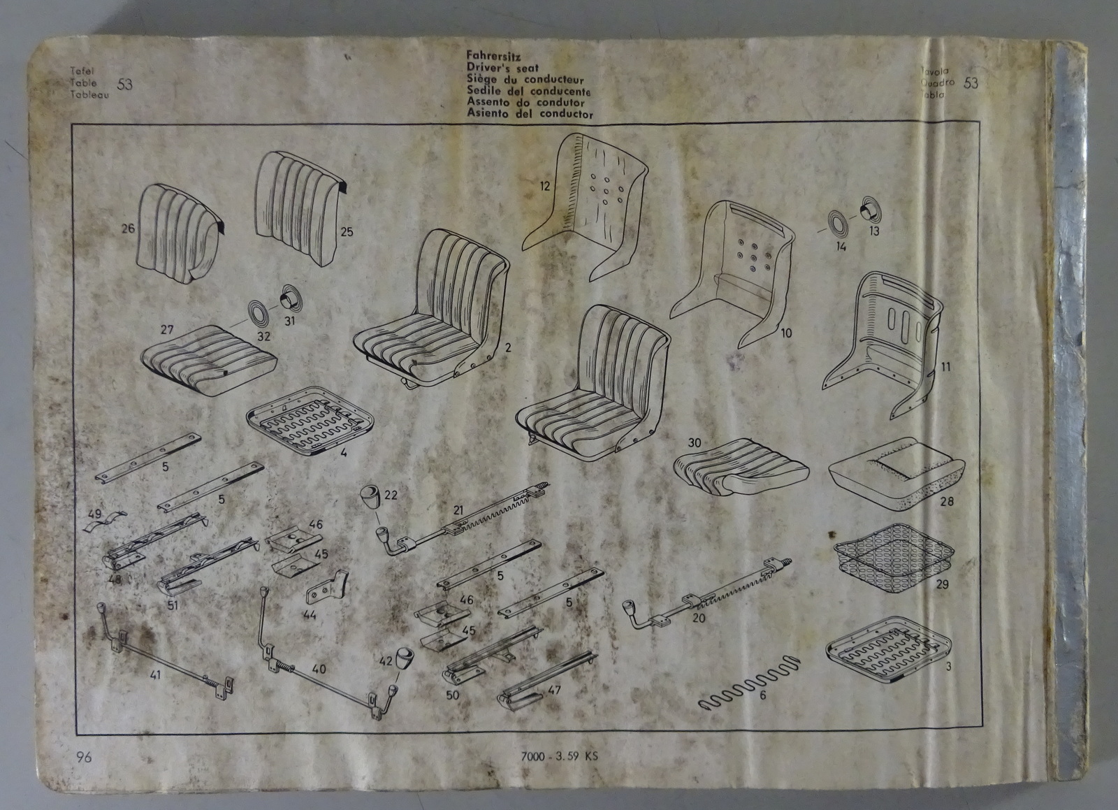 Zustand: mit deutlichen Gebrauchsspuren, hinteres Cover fehlt, Teilekatalog ist auf jeder Seite gewellt