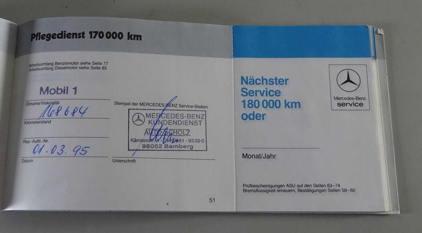 Inhalt: Betriebsanleitung, Händlerverzeichnis Europa, Preisliste, Serviceheft mit Einträgen bis 168.684 km.