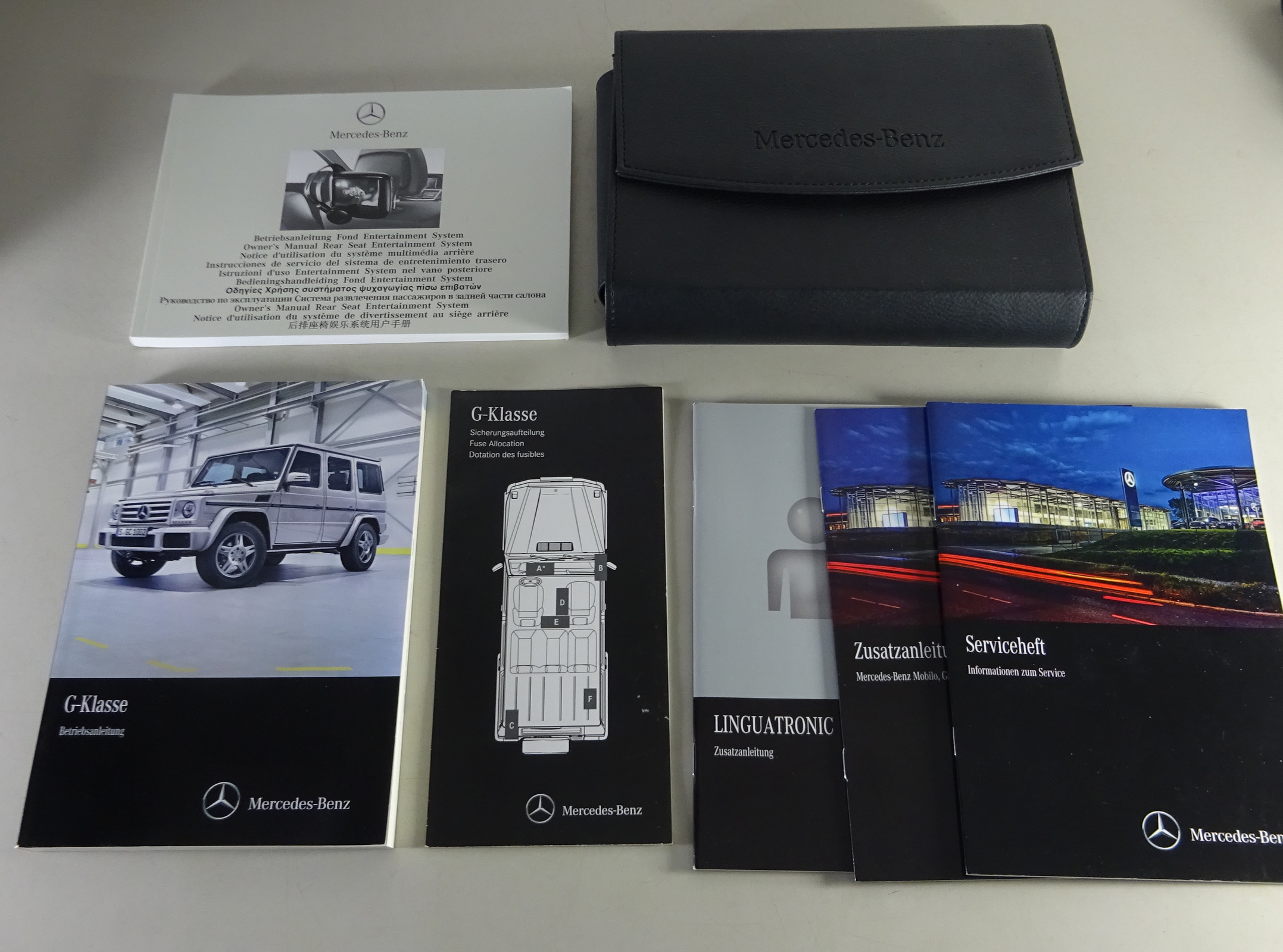 Inhalt: Betriebsanleitung, Betriebsanleitung Fond Entertainment System, G-Klasse Sicherungsaufteilung, Zusatzanleitung Linguatronic, Serviceinformationen, Mercedes-Benz Mobilio