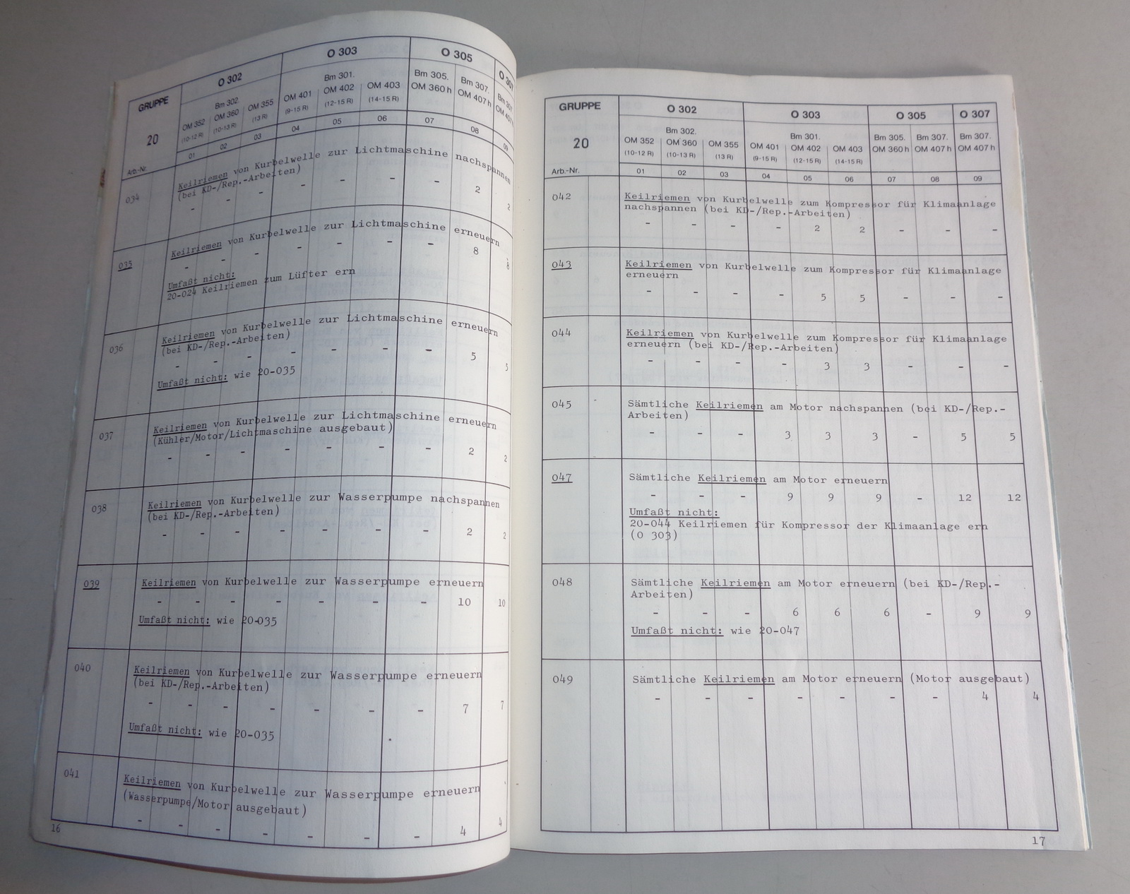 (Vorläufige) Richtzeiten / Arbeitswerte Mercedes Benz Omnibusse O 303, O... mehr