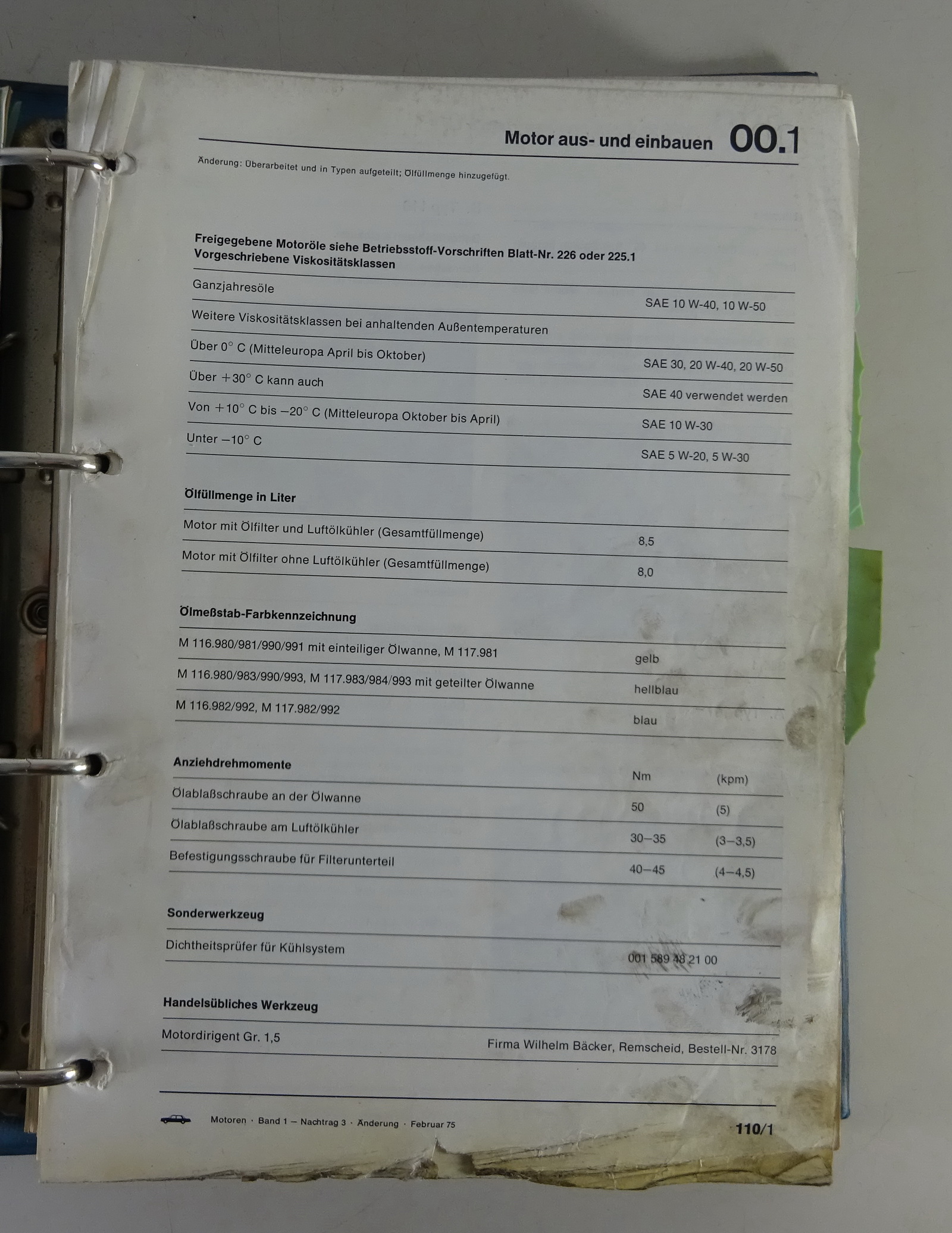 Werkstatthandbuch Mercedes Motoren M 110 / M 116 / M 117 | Stand 05/1971