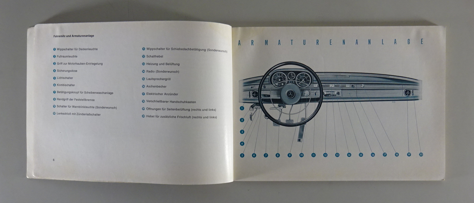 Bordmappe + Betriebsanleitung Mercedes Benz W108 280 SE Stand 07/1968