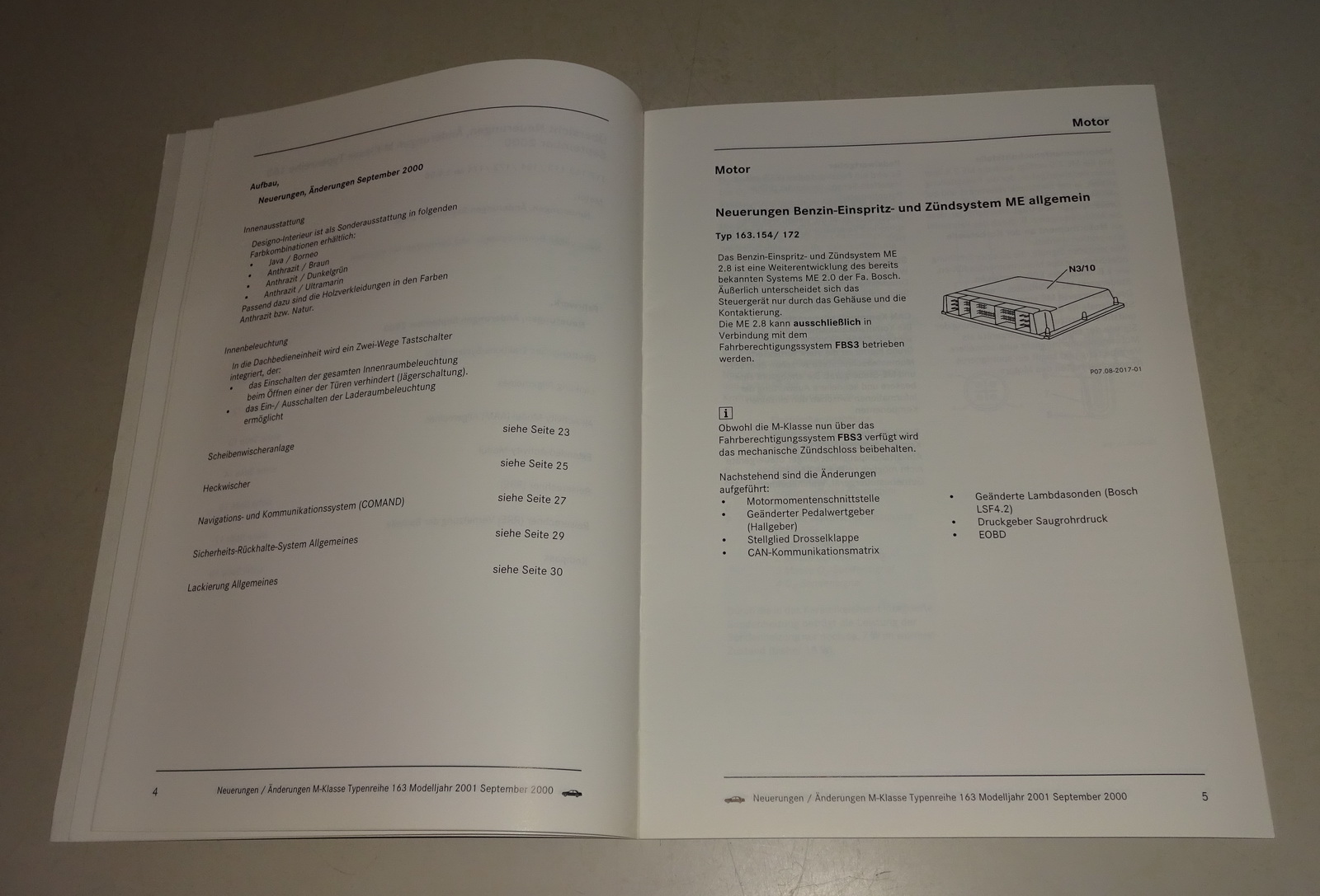 Werkstatthandbuch Neuerungen Mercedes-Benz ML M-Klasse Typ W163 Modelljahr 2001